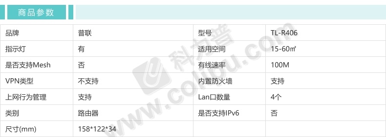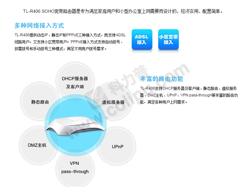 普联 TP-LINK SOHO宽带有线路由器 TL-R406 4口百兆