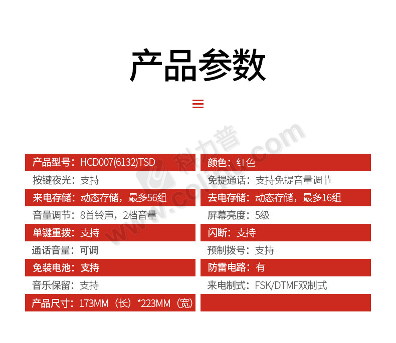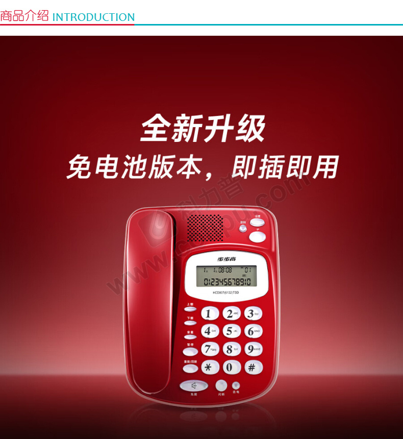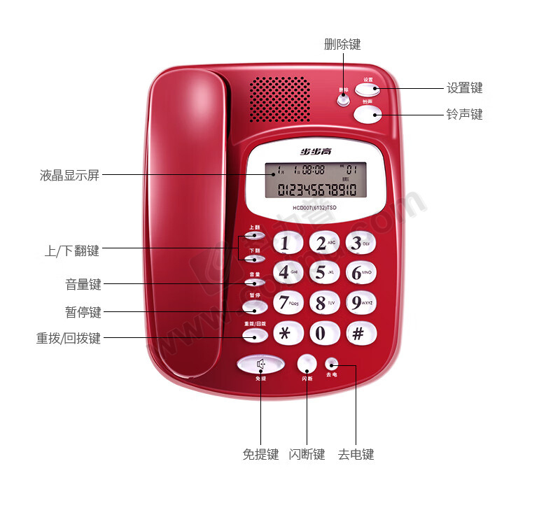 步步高 BBK 电话机 HCD007(6132)TSD 大按键 (红色)