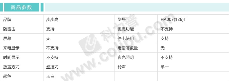 步步高 电话机 HA007(126)T 面包机 壁挂式 玉白