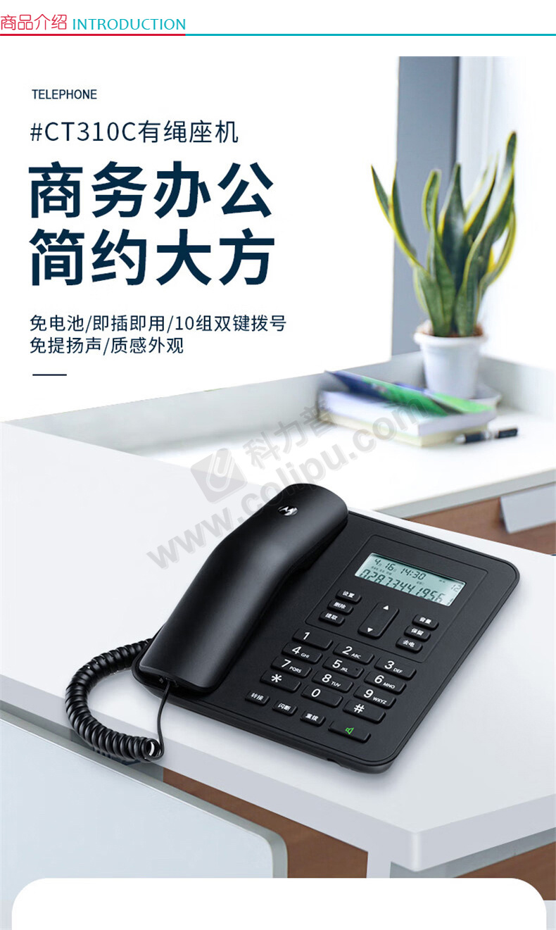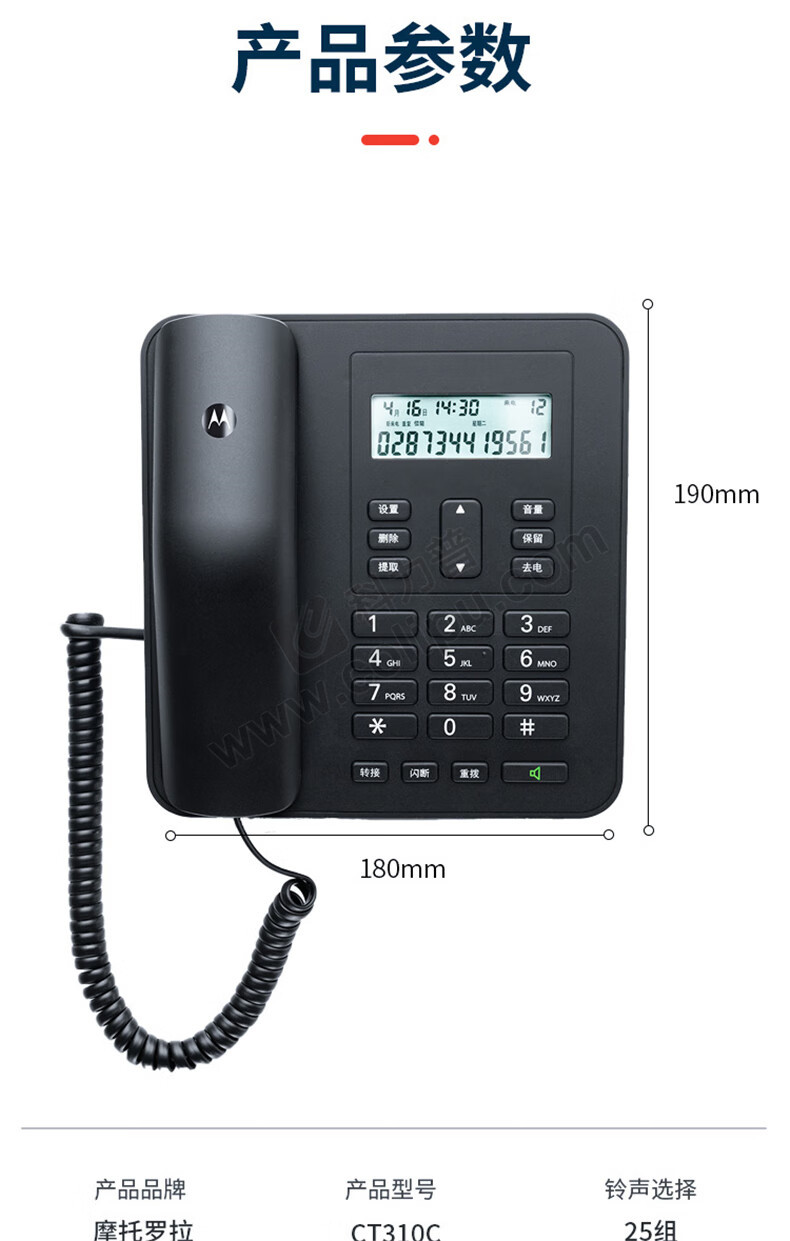 摩托罗拉 MOTOROLA 电话机 CT310C 免提通话 (黑色)