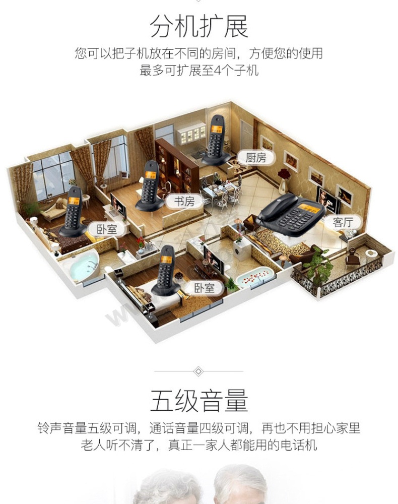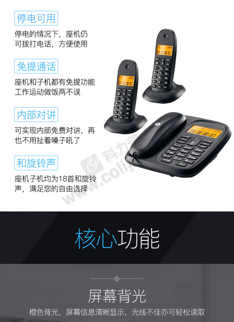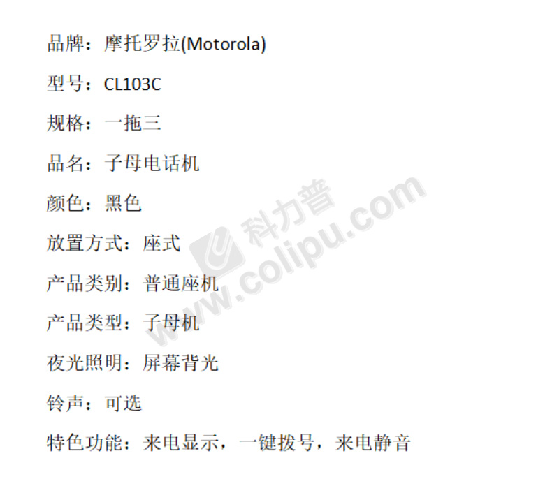 摩托罗拉 MOTOROLA 无绳电话机 CL103C 一拖三子母机 (黑色)