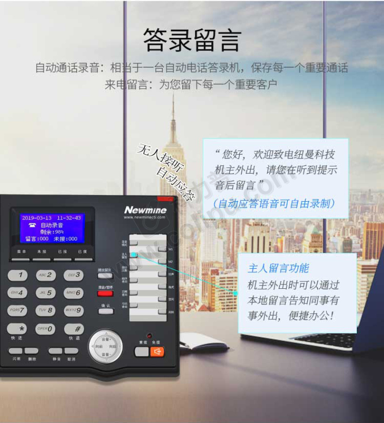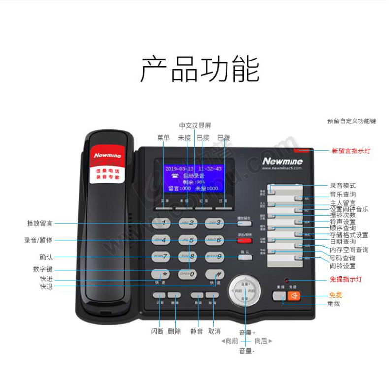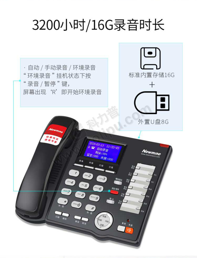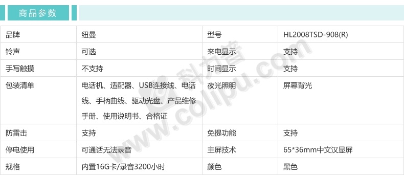 纽曼 录音电话机 HL2008TSD-908(R) 内置16G卡/录音3200小时
