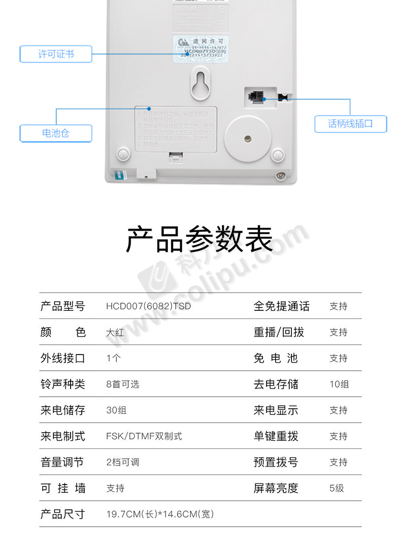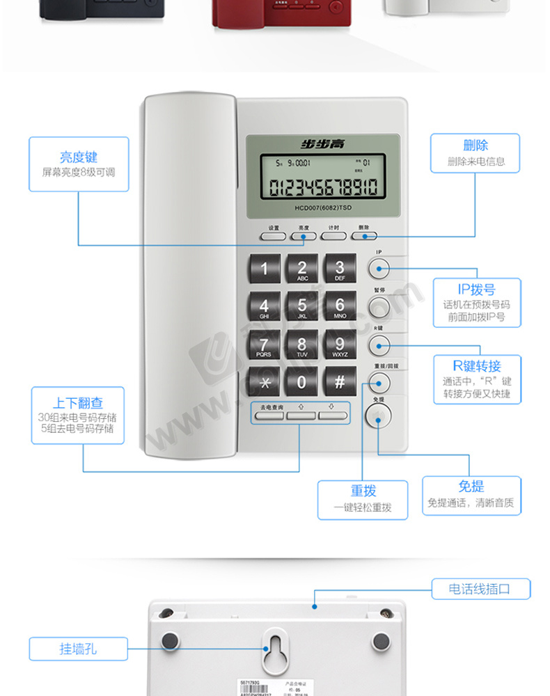 步步高 BBK 电话机 HCD007(6082)TSD 免提通话 (红色)