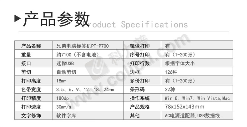 兄弟 brother 电脑标签打印机 PT-P700 热转印
