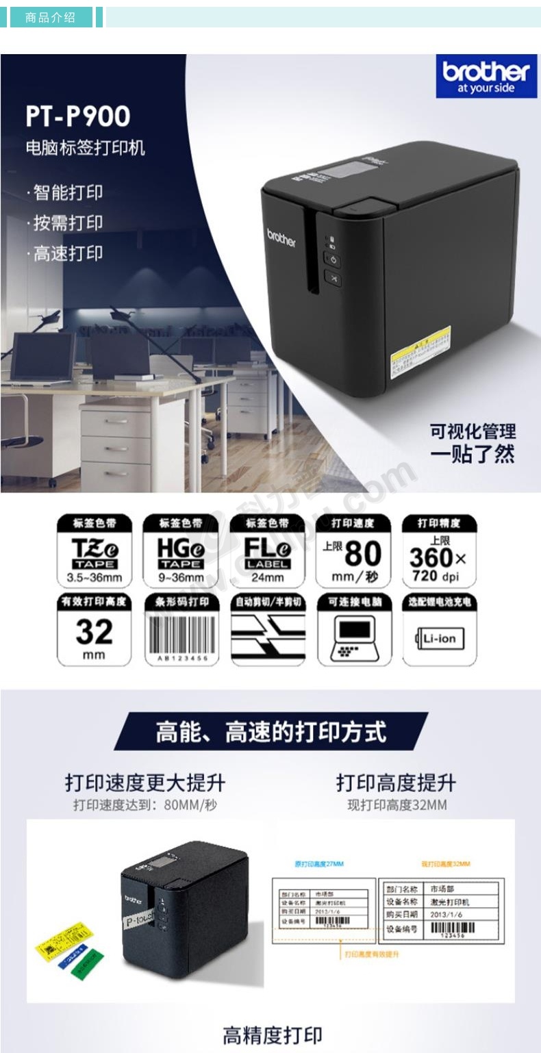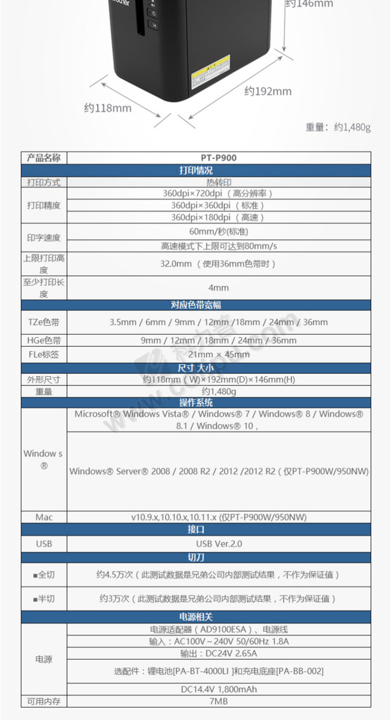 兄弟 brother 桌面标签打印机 PT-P900 (黑色)