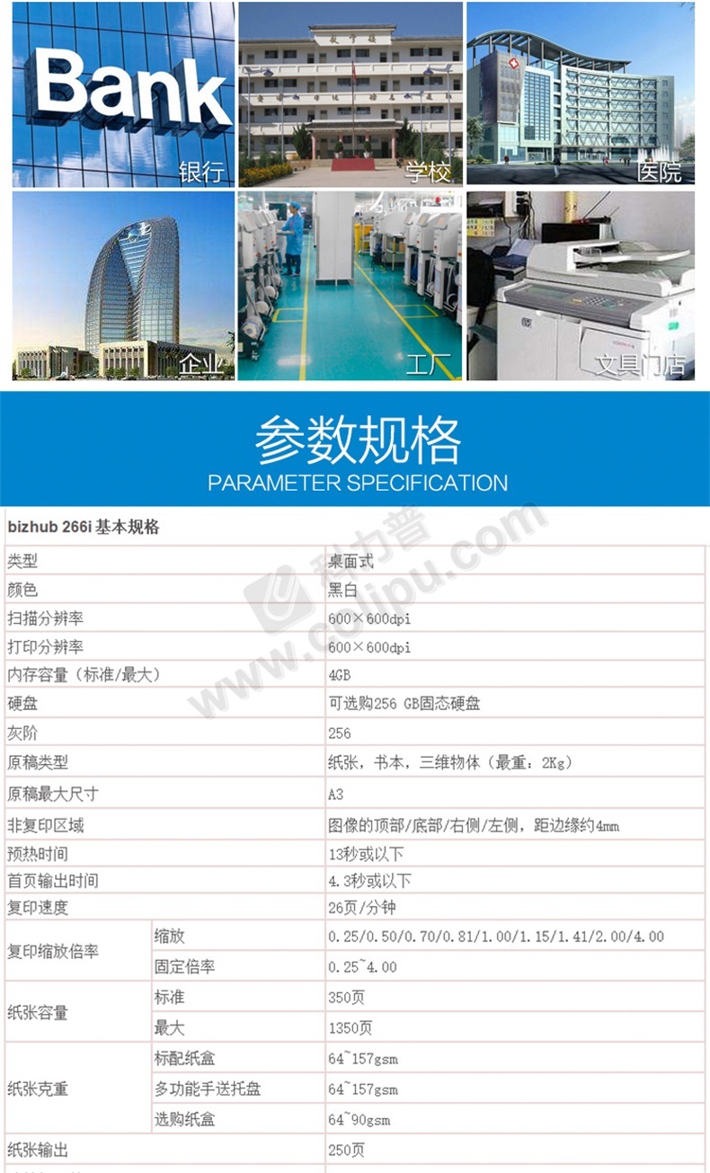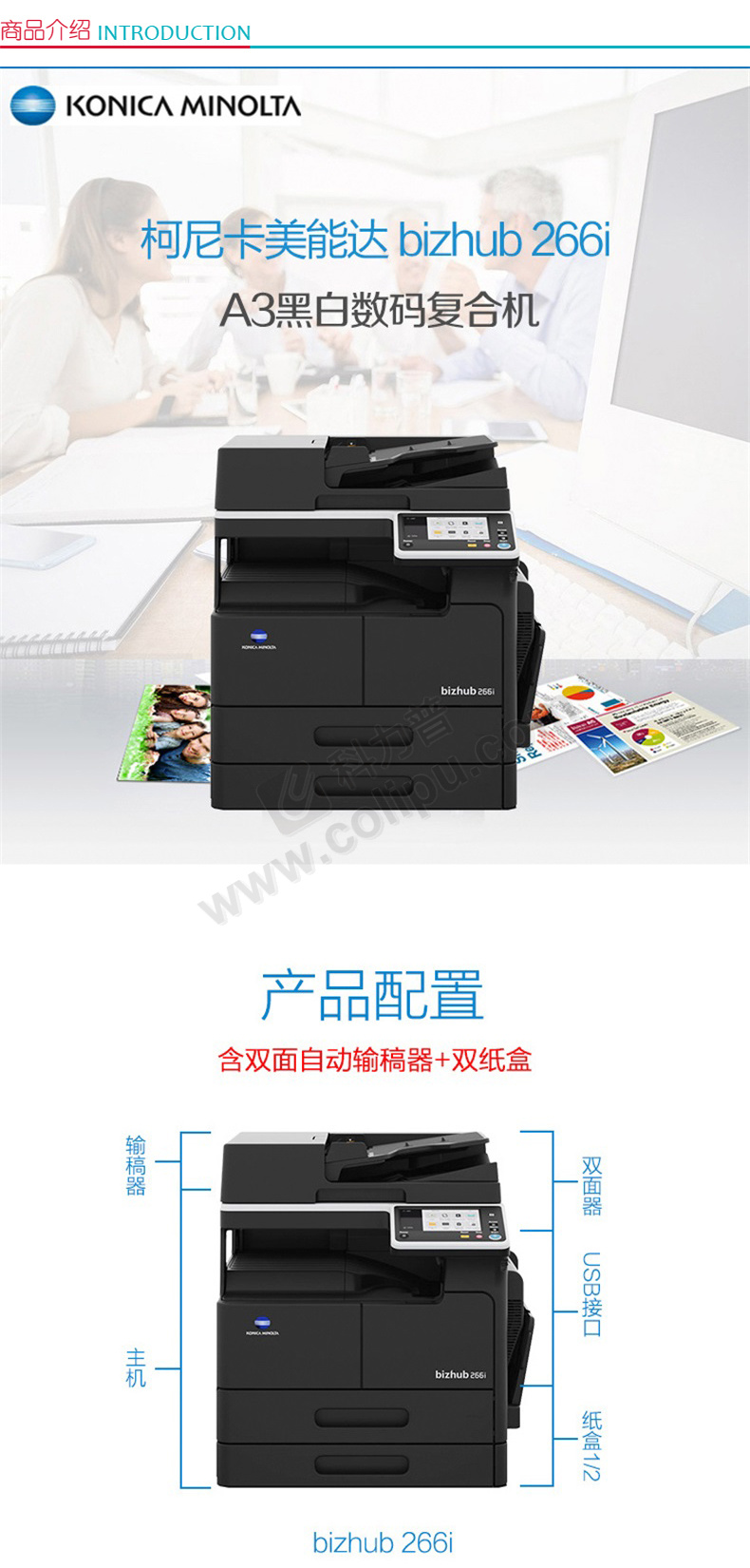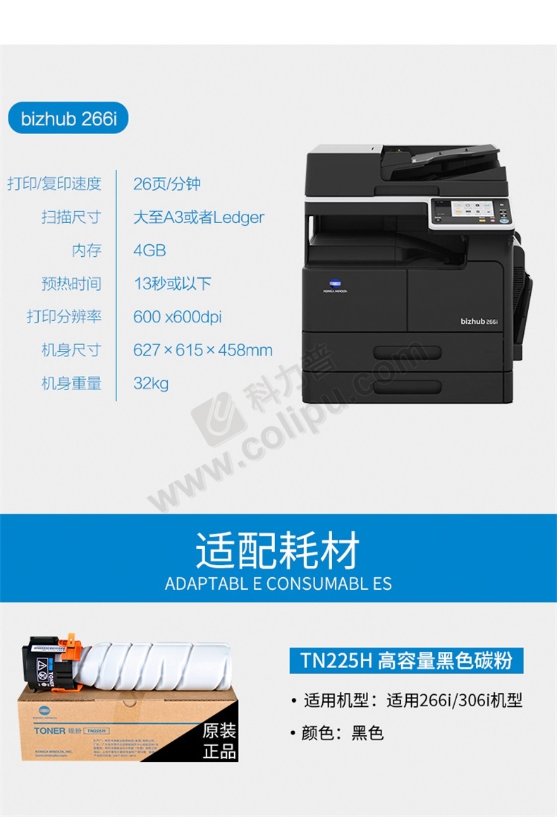 柯尼卡美能达 KONICA MINOLTA A3黑白数码复印机 bizhub 266i (双纸盒、双面输稿器、工作台)