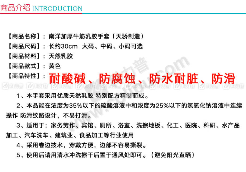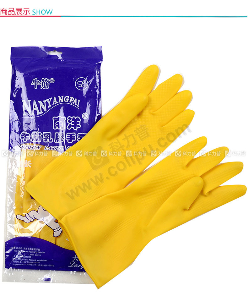 南洋 牛筋乳胶手套 大号 (黄色) 200双/箱 (加厚型)