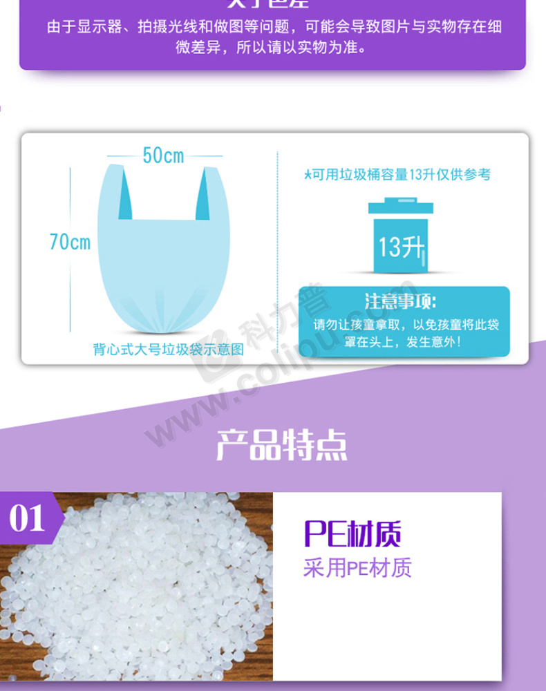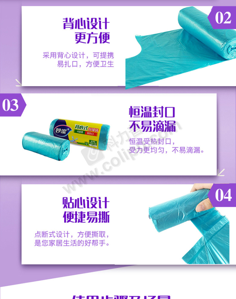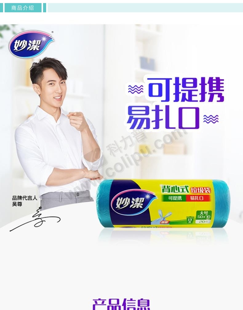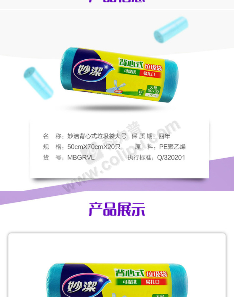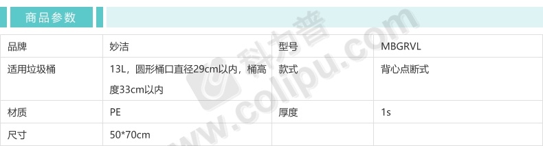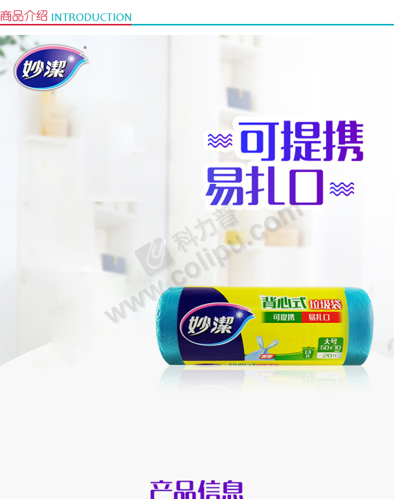 妙洁 MIAOJIE 垃圾袋 背心式 MBGRVL 50cm*70cm (蓝紫色随机) 20只/卷 60卷/箱