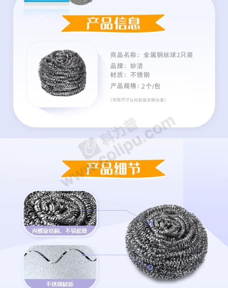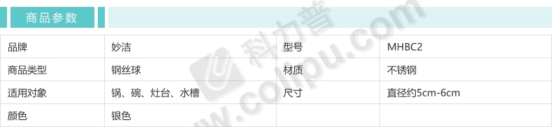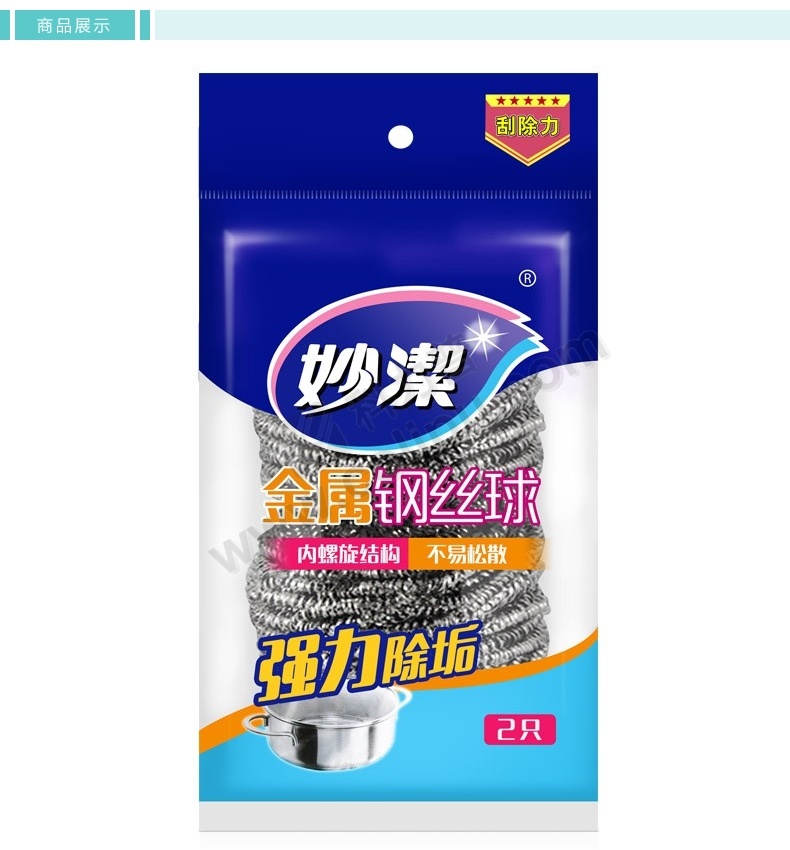 妙洁 MIAOJIE 金属钢丝球 MHBC2 20g 直径约5cm-6cm (银色) 2只/包 30包/箱 新老包装随机发货