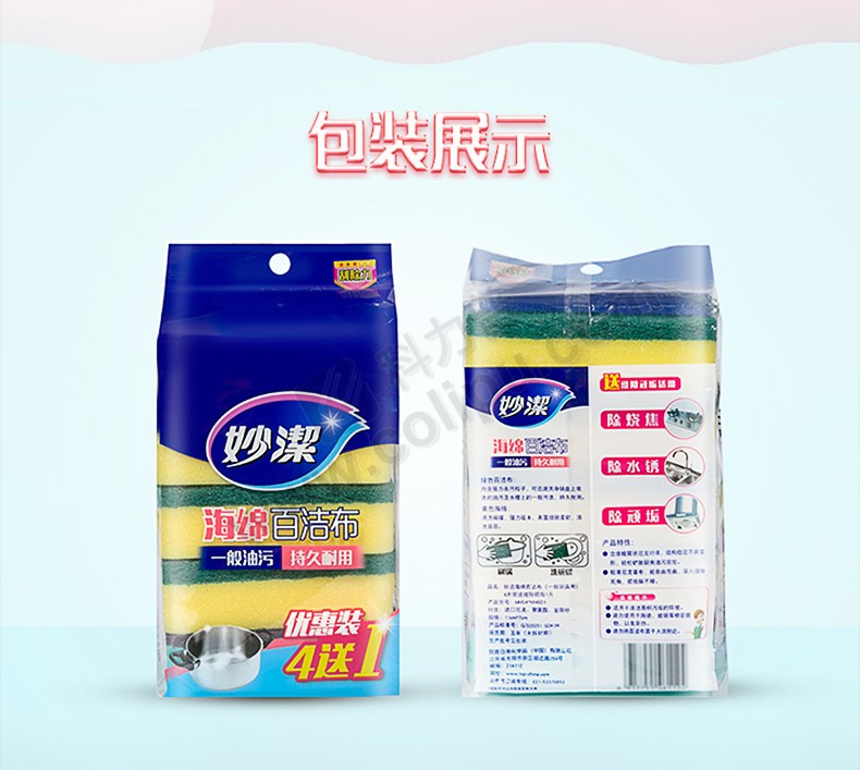 妙洁 MIAOJIE 海绵百洁布 超值装 MHS8 11cm*7cm 8片/包 30包/箱 新老包装交替