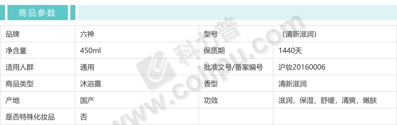 六神 Liushen 沐浴露 (清新滋润) 450ml/瓶 20瓶/箱