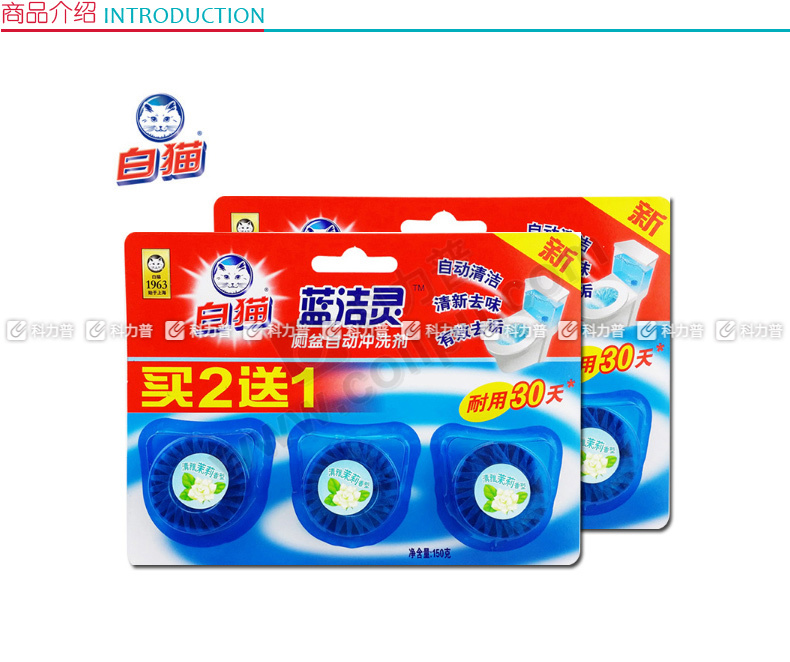白猫 WhiteCat 蓝洁灵洁厕块 50g/块 (2+1)块/组 36组/箱