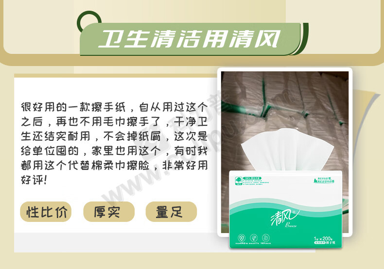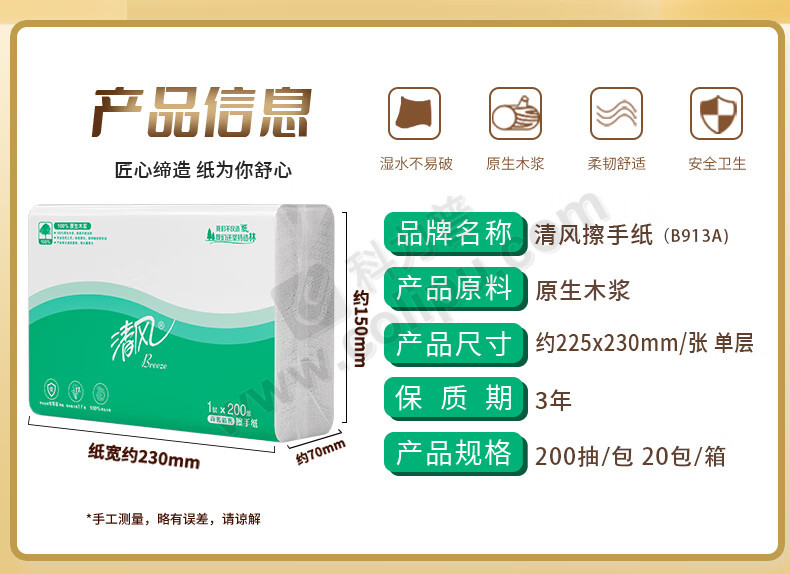 清风200抽三折擦手纸木浆抽纸整箱装(20包/箱)B913A