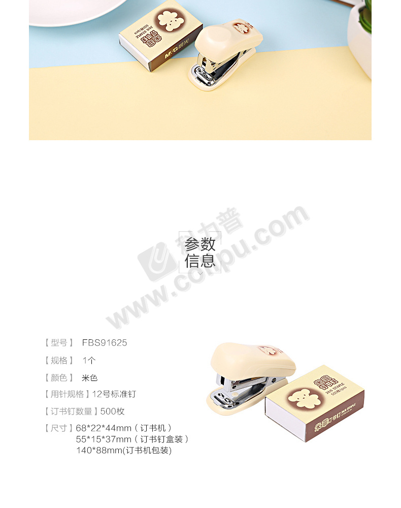 晨光 M&G 订书机套装 FBS91625 10页 (米色) 24卡/盒 (适配#24/6订书钉)