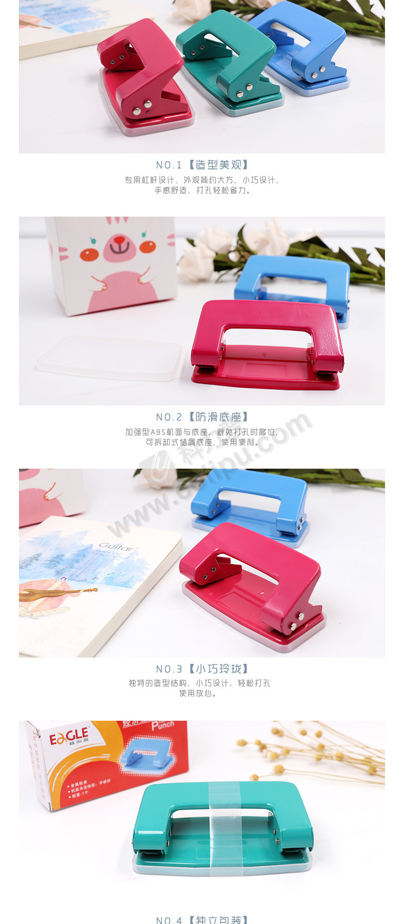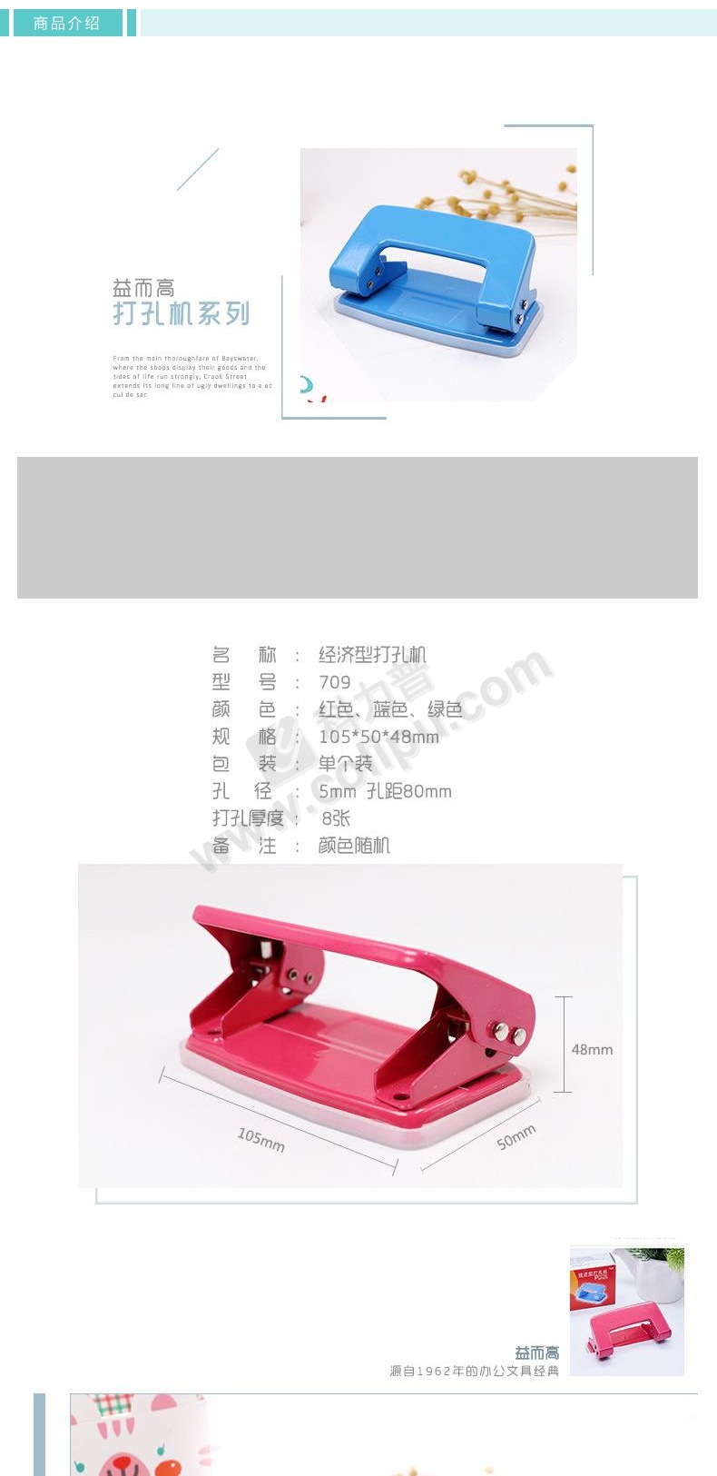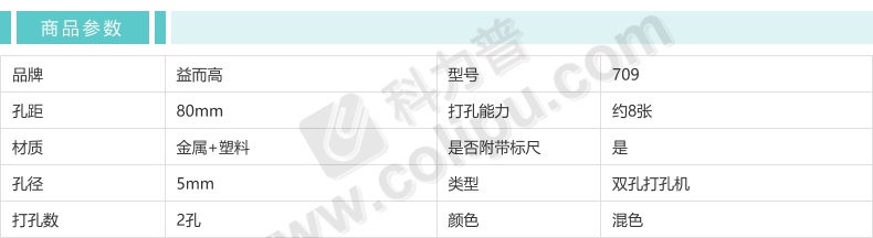 益而高 Eagle 经济型两孔打孔机 709 8张 (蓝色、红色、绿色) 12个/盒 (颜色随机)