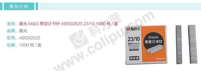 晨光 M&G 厚层订书针 ABS92625 #23/10 1000枚/盒