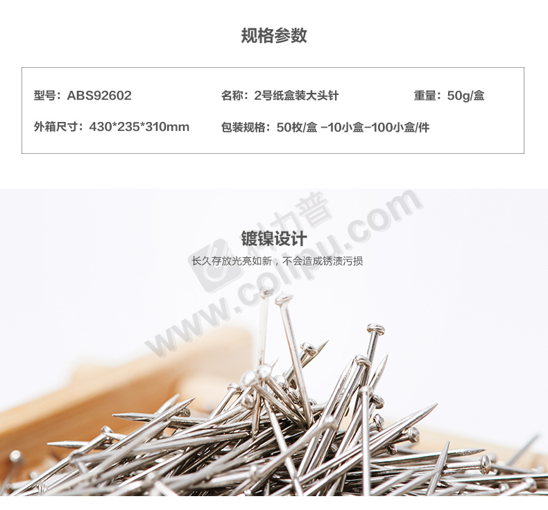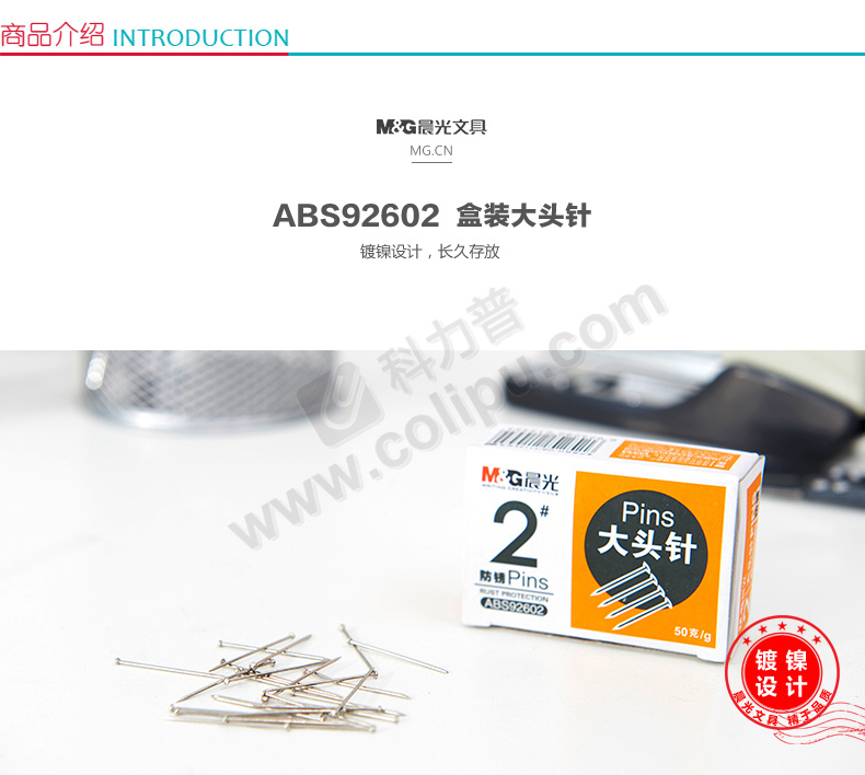 晨光 M&G 2#纸盒大头针 ABS92602 50g/盒 10盒/中箱