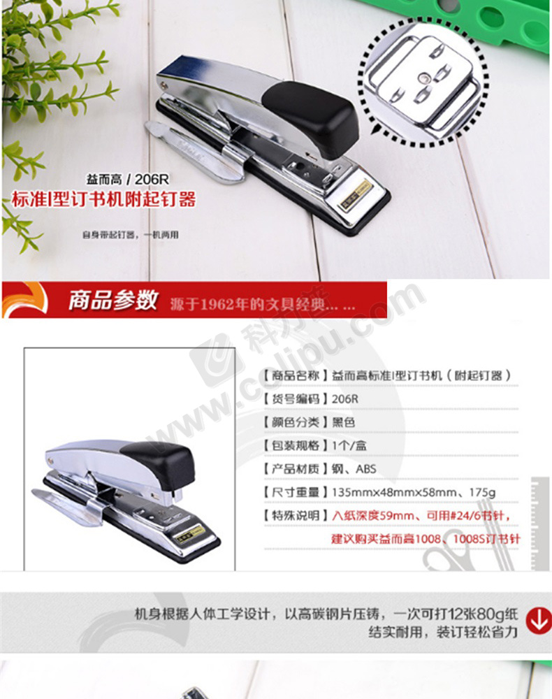 得力(deli) 得力订书机0306 12号钉书器装订机 旋转钉板钉25页 颜色随机
