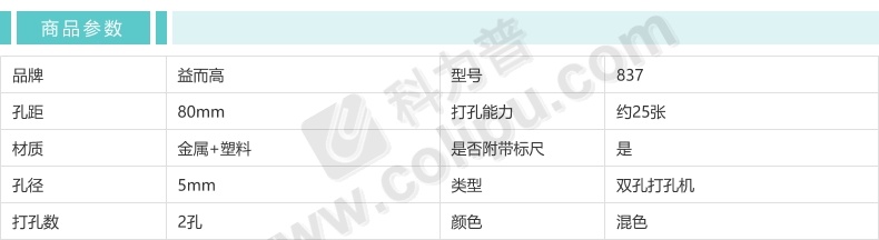 益而高 Eagle 打孔机 837 25张 孔径5.5mm 孔距80mm (黑色、紫红色、蓝色、绿色) 12个/盒 (颜色随机)