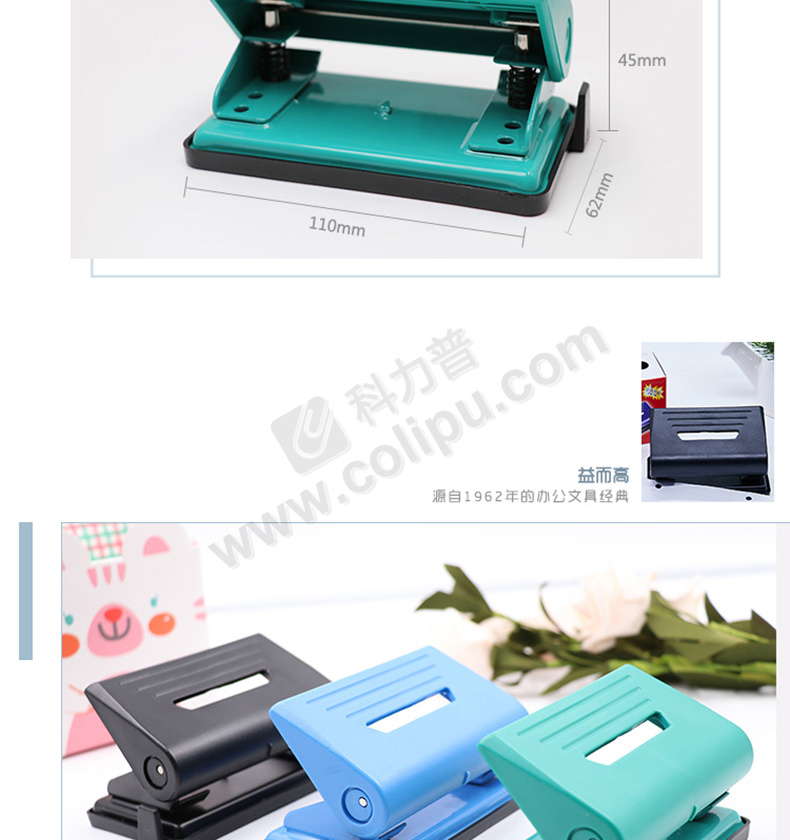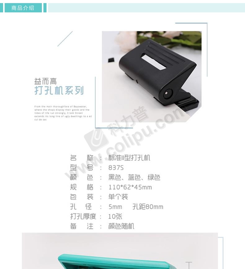 益而高 Eagle 打孔机 837 25张 孔径5.5mm 孔距80mm (黑色、紫红色、蓝色、绿色) 12个/盒 (颜色随机)