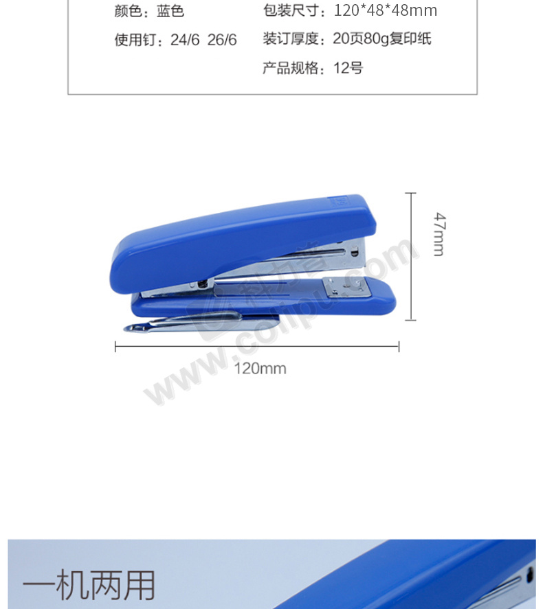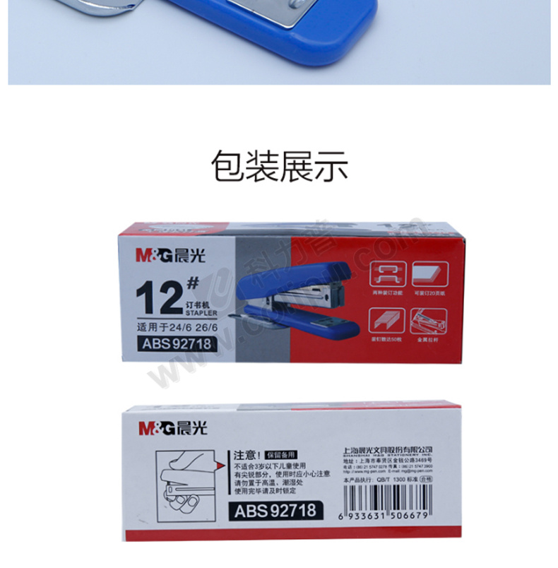 晨光 M&G 侧带起钉器订书机 ABS92718 12号 (蓝色) (适配24/6、26/6针)