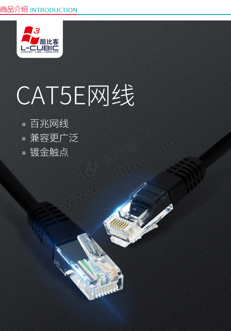 酷比客 L-CUBIC 超五类 铜包铝非屏蔽网线 LCLN5ECSGY-10M 10米 (黑色)