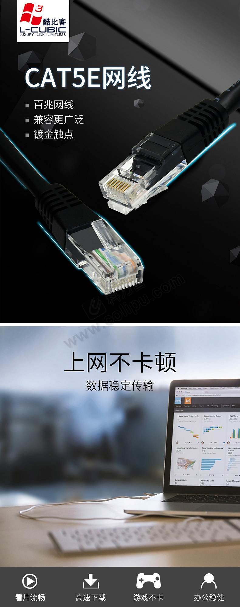KKK 优质纯铜超五类网络跳线 成品网线 全铜宽带网线 1.5米 颜色随机