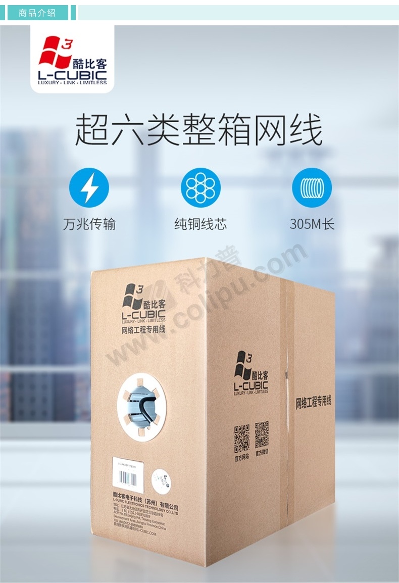 酷比客 L-CUBIC 超六类纯铜成箱网线 LCLN6ABK-305M 305米 (黑色)