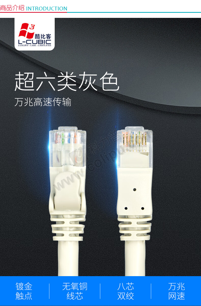 酷比客 L-CUBIC 超六类万兆网线 圆线 LCLN6ARRBE-2M 2米 (灰色)