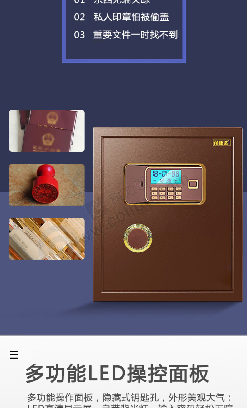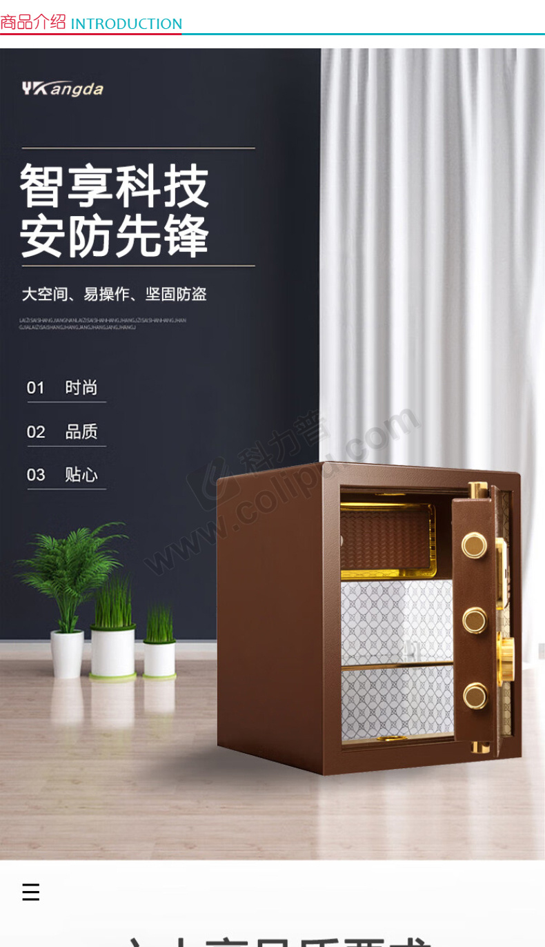 甬康达 高级 电子密码保管箱 BGX-D1-450 外H450*W390*D330mm 内H432*W382*D312mm (古铜色) 24KG