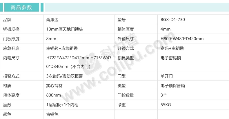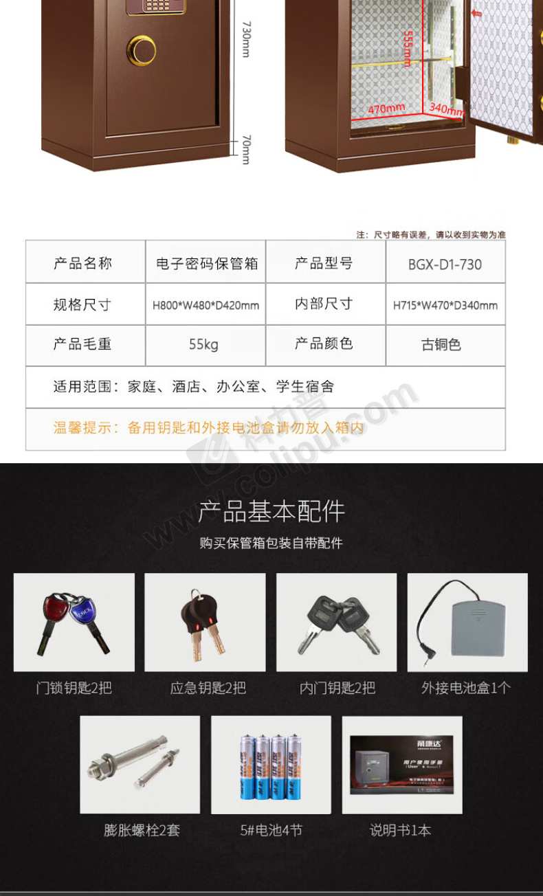 甬康达 高级 电子密码保管箱 BGX-D1-730 外H800*W480*D420mm 内H715*W470*D340mm (古铜色) 55KG