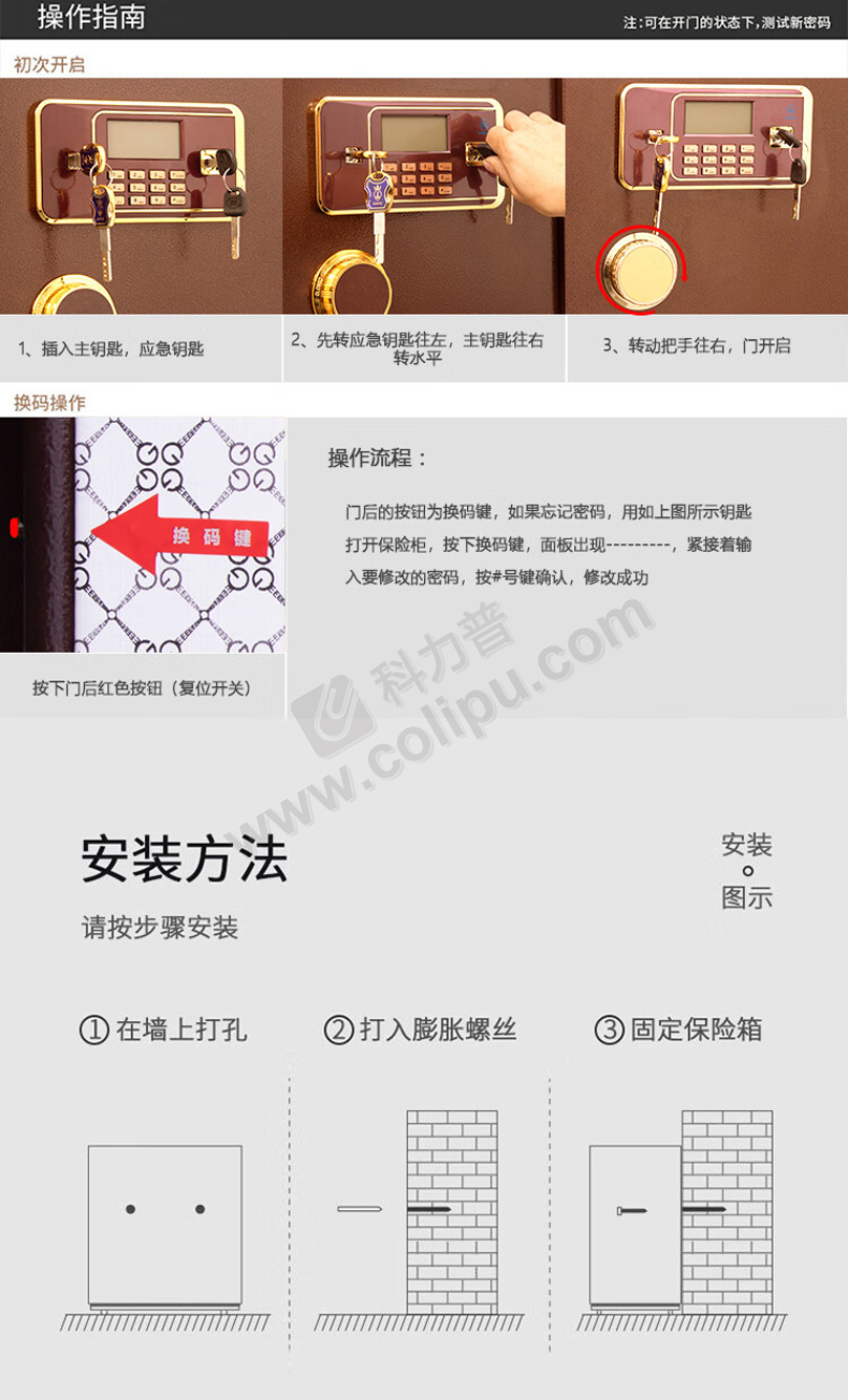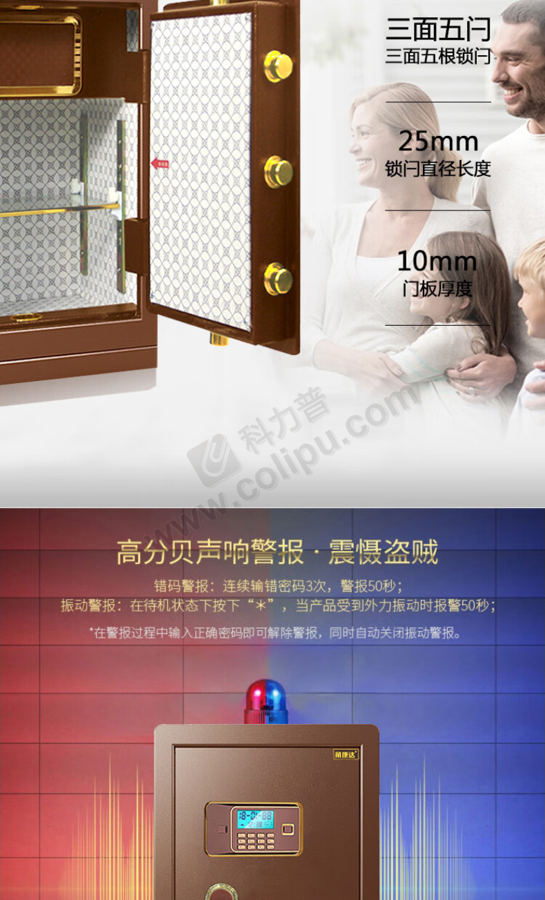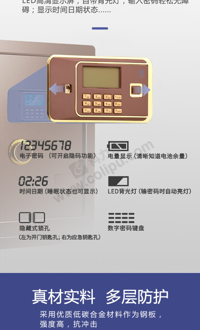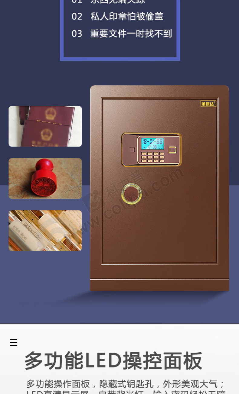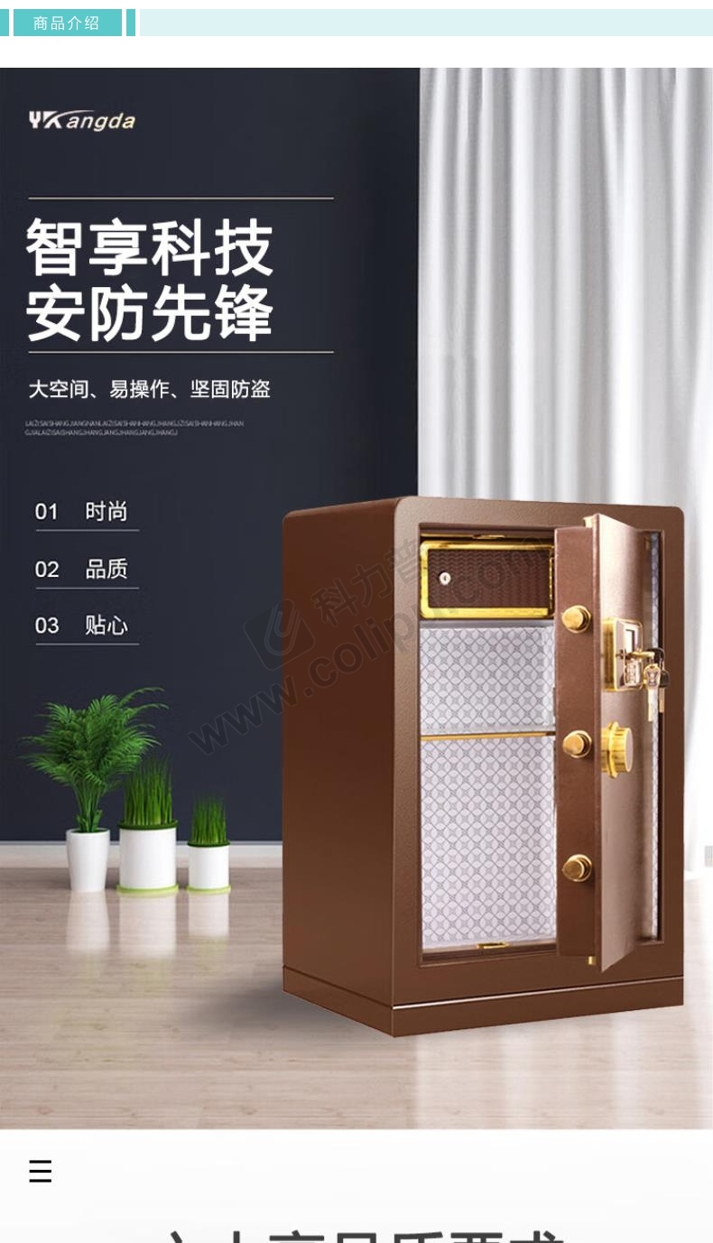 甬康达 高级电子密码保险柜 BGX-D1-730S 外H800*W430*D380mm 内上H240*W410*D340mm 内下H390*W410*D340mm (古铜色) 50KG