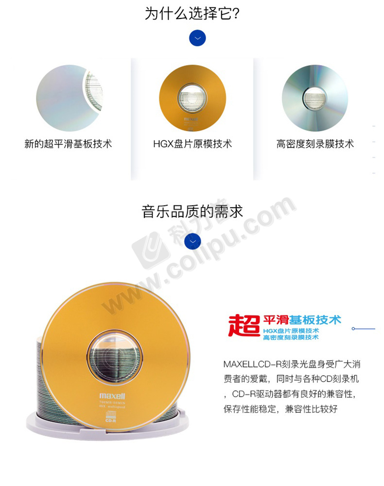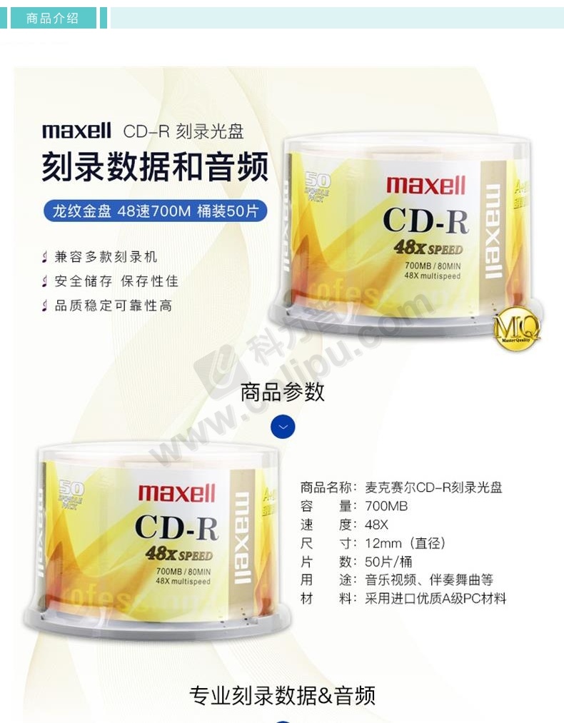 麦克赛尔 maxell 光盘 CD-R 50片/筒 (彩色) 48X 700MB