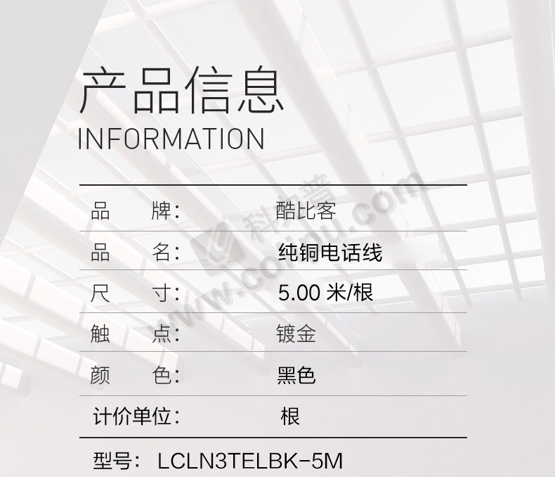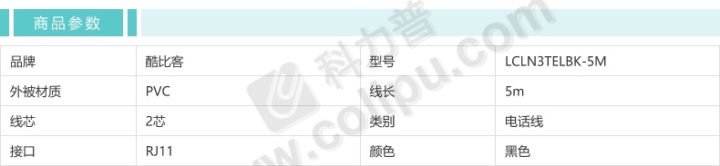 酷比客 L-CUBIC 两芯纯铜电话线 LCLN3TELBK-5M 5米 (黑色)