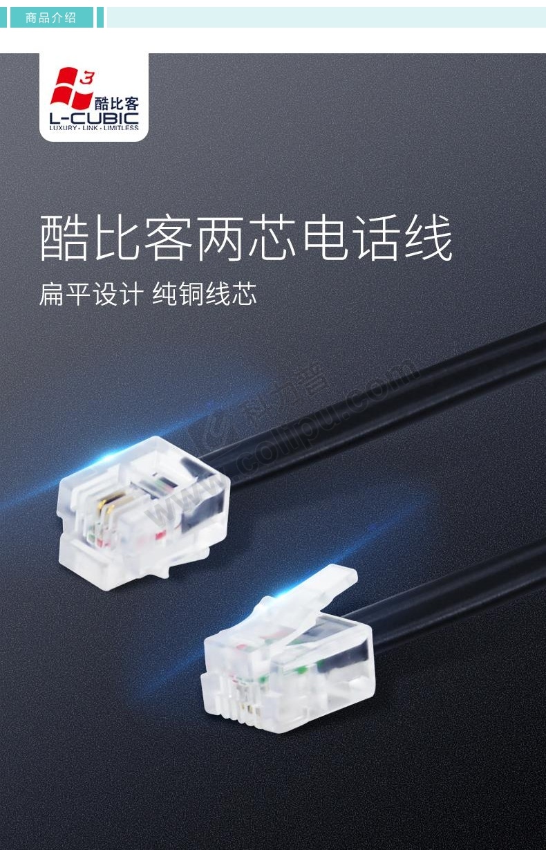 酷比客 L-CUBIC 两芯纯铜电话线 LCLN3TELBK-3M 3米 (黑色)