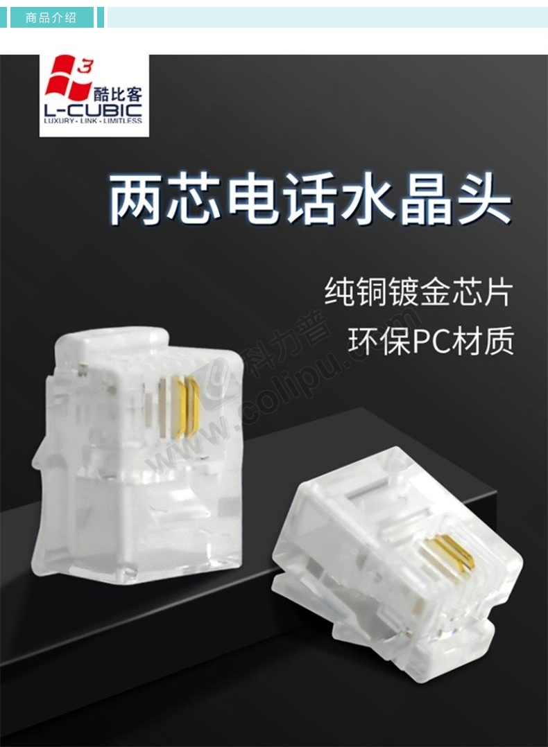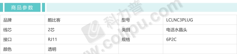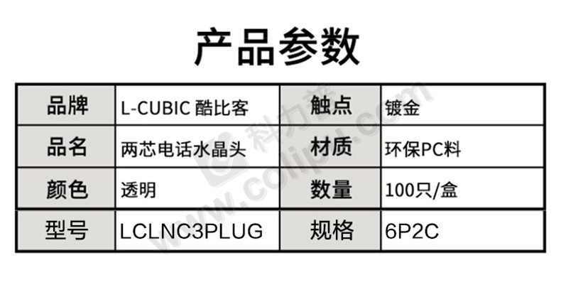 酷比客 L-CUBIC 电话水晶头 LCLNC3PLUG 6P2C/100个/盒 (透明色) 100只/盒(透明色)
