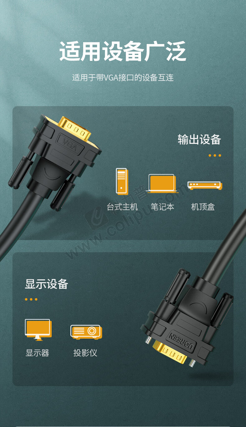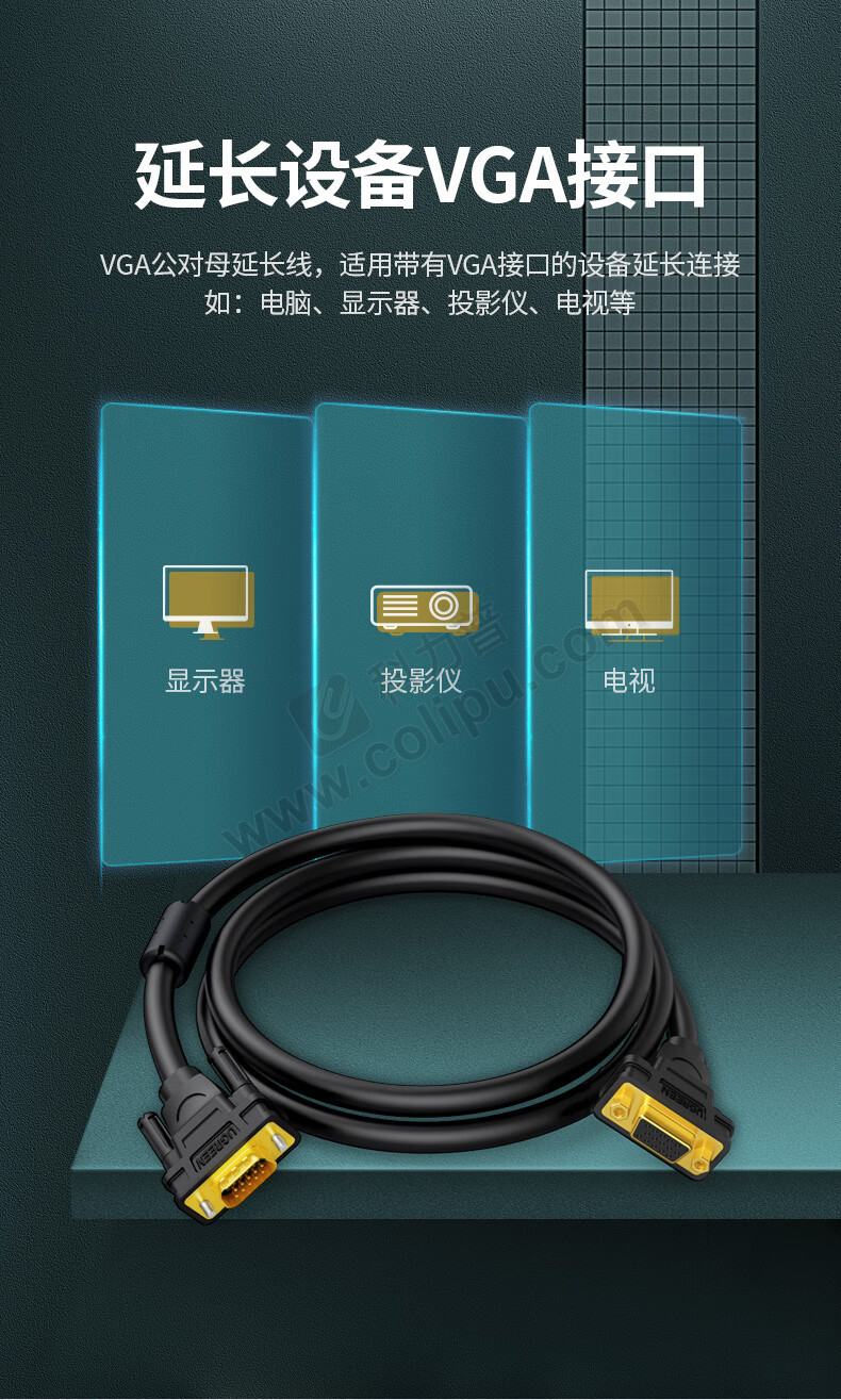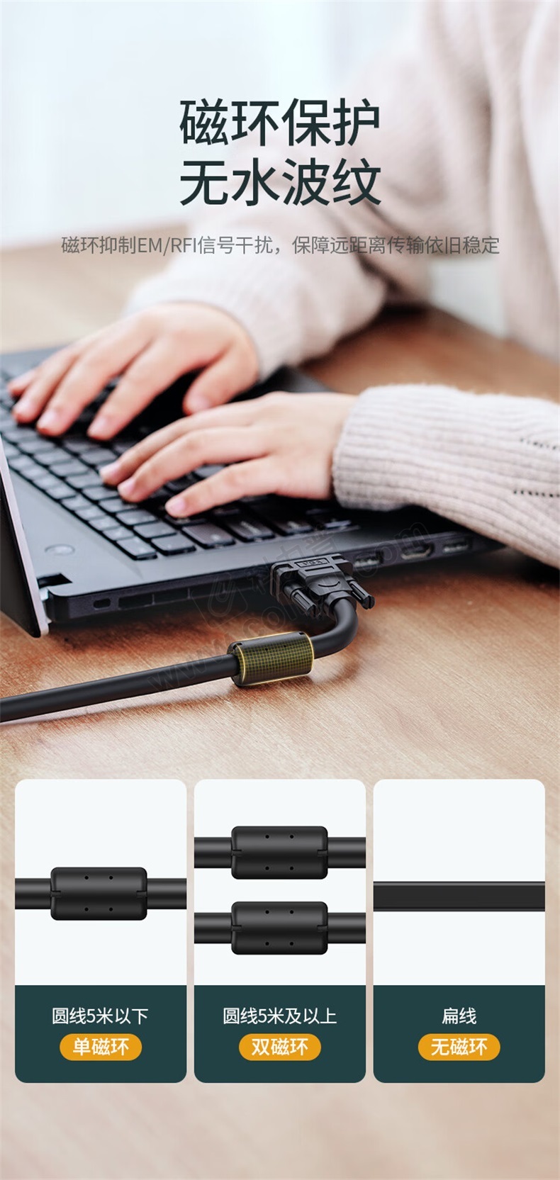 绿联 UGREEN VGA线 3+6芯工程线 11673 VG101 1米 (黑色)