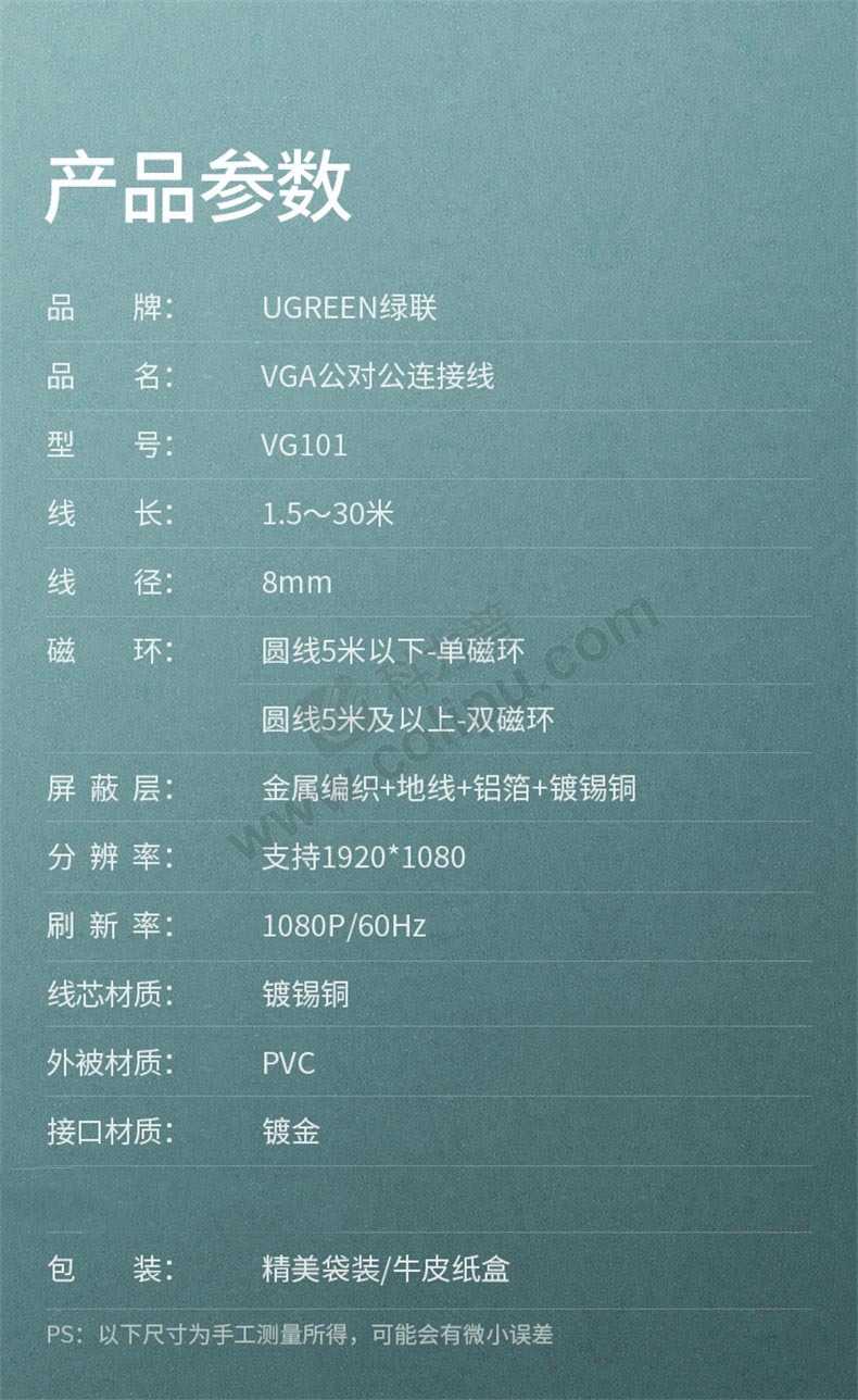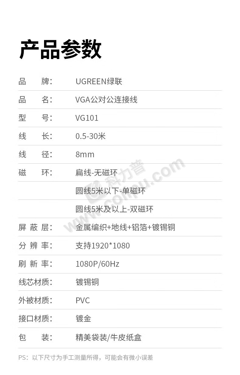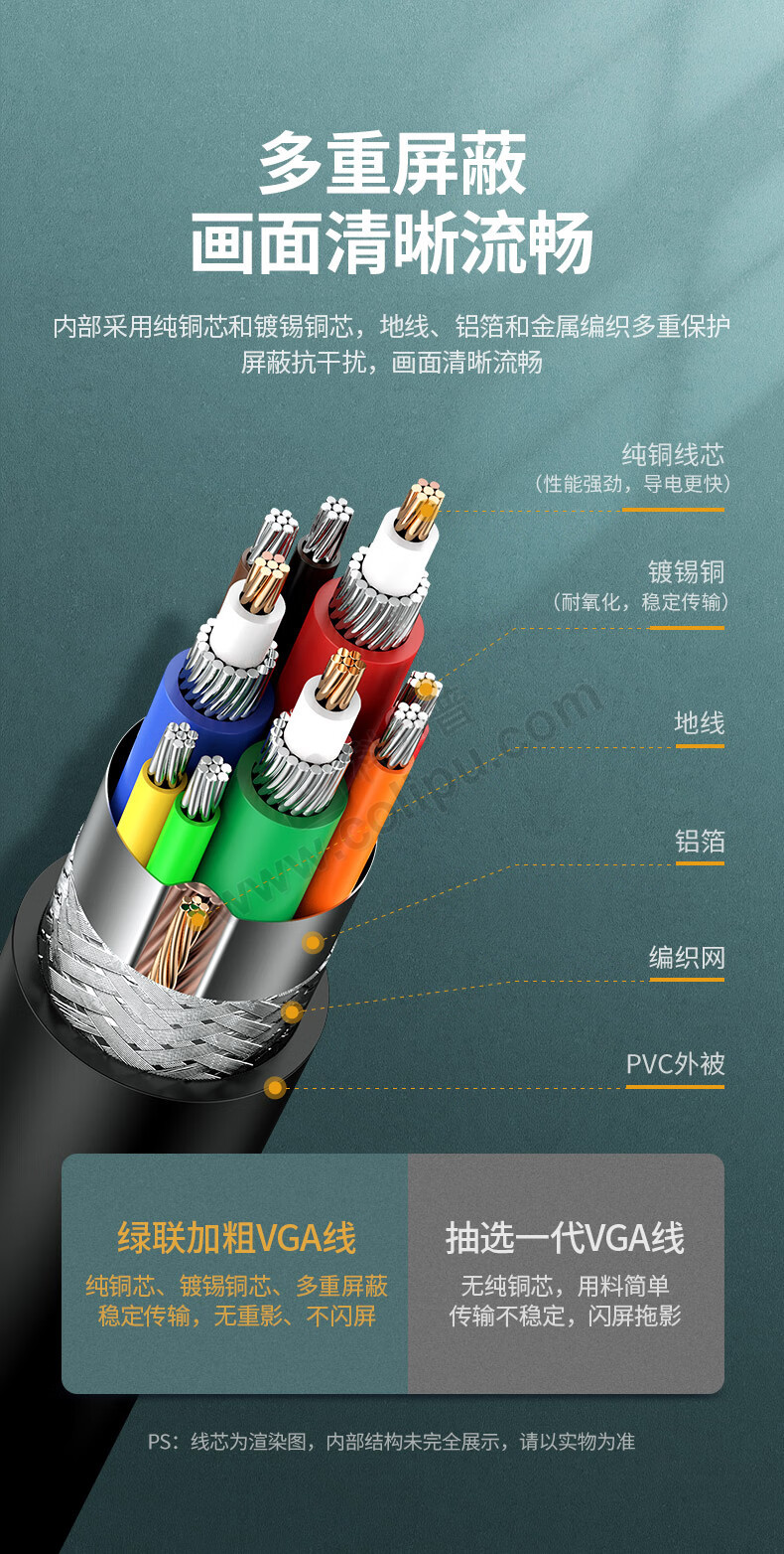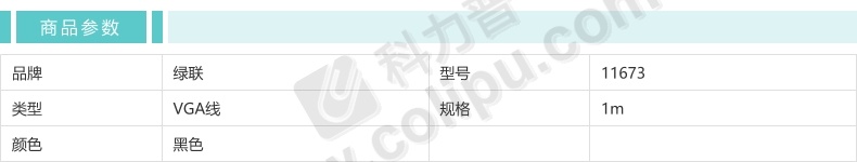 绿联 UGREEN VGA线 3+6芯工程线 11673 VG101 1米 (黑色)