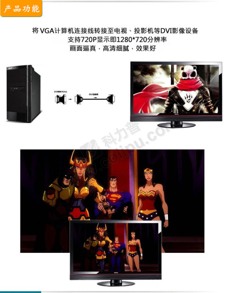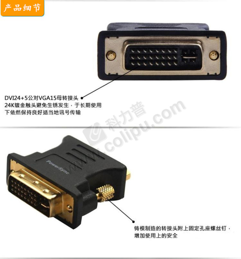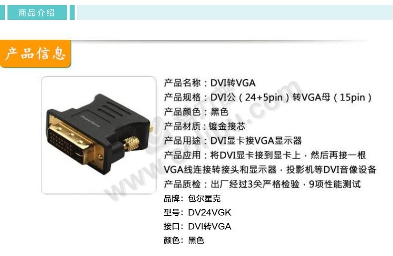 包尔星克 转接头 DVI转VGA 24K金 DV24VGK DVI转VGA 24K金 (黑色)