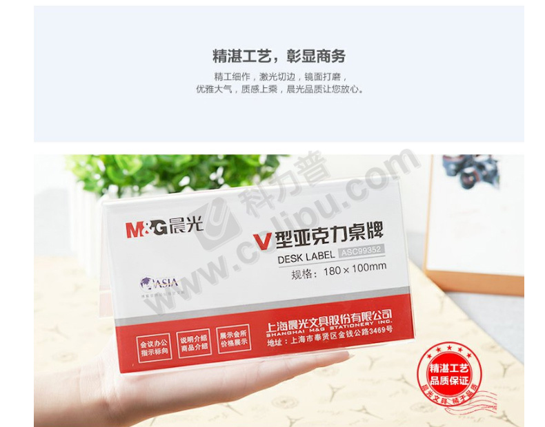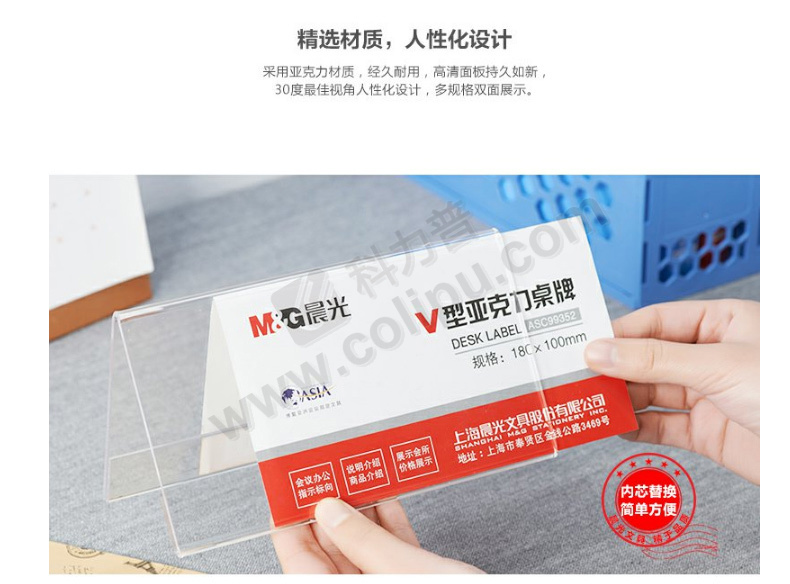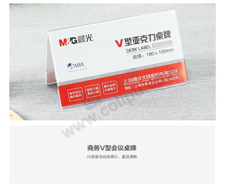 晨光 M&G 亚克力商务V型会议桌牌 ASC99352 180*100mm