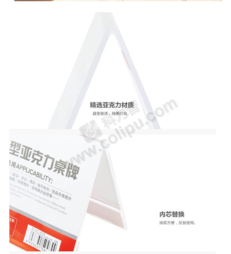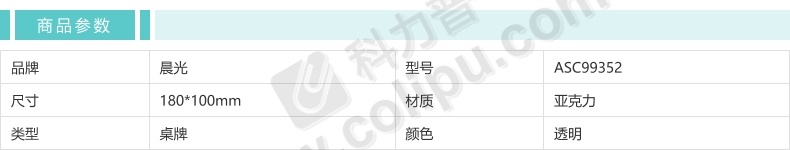 得力 V型亚克力桌牌 9292 150*60mm 透明