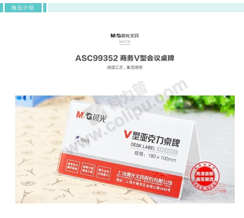 晨光 M&G 商务V型会议桌牌 ASC99351 150×80mm