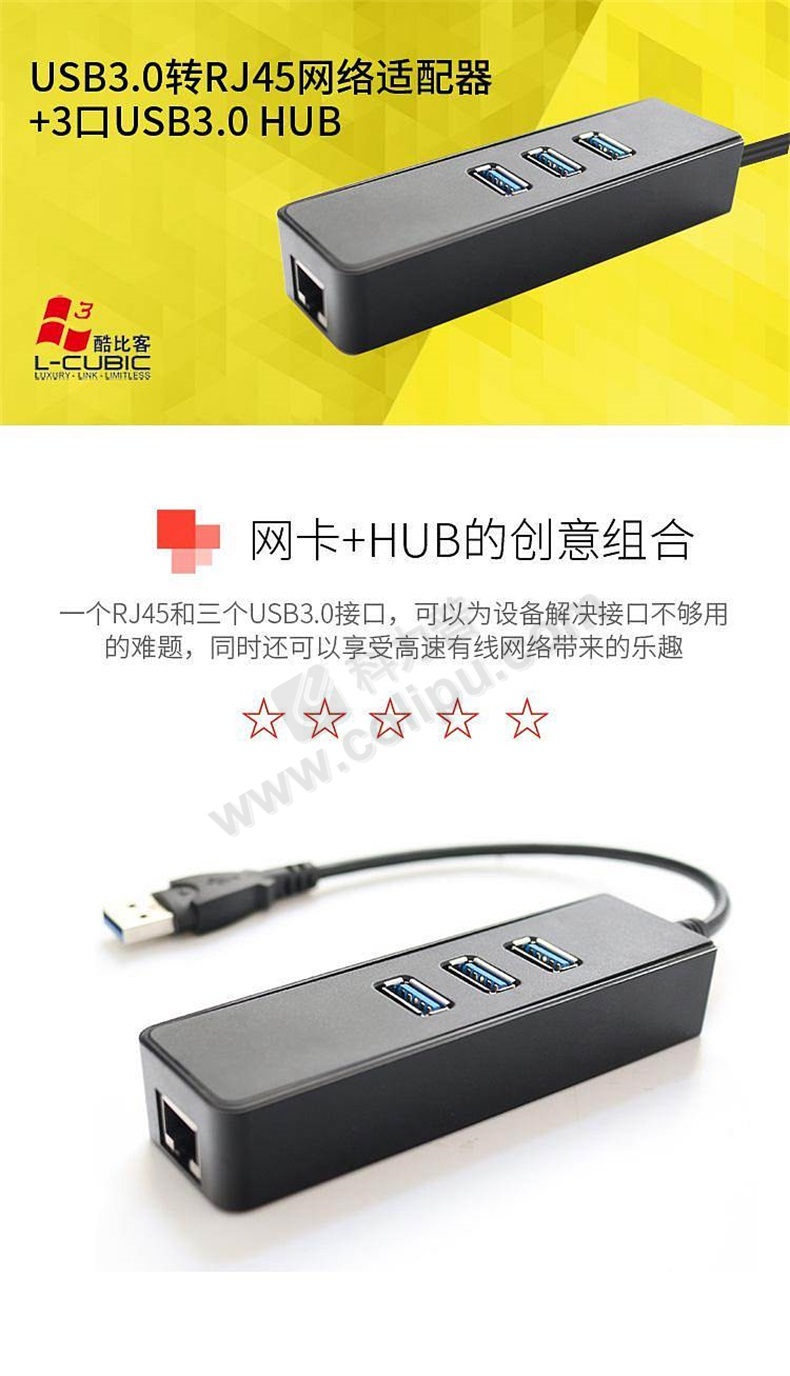 酷比客 L-CUBIC USB2.0集线器 LCHC01BK 3口 (黑色) 带读卡器