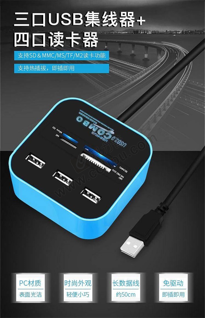 酷比客 L-CUBIC USB2.0集线器 LCHC01BU 3口 (蓝色) 带读卡器