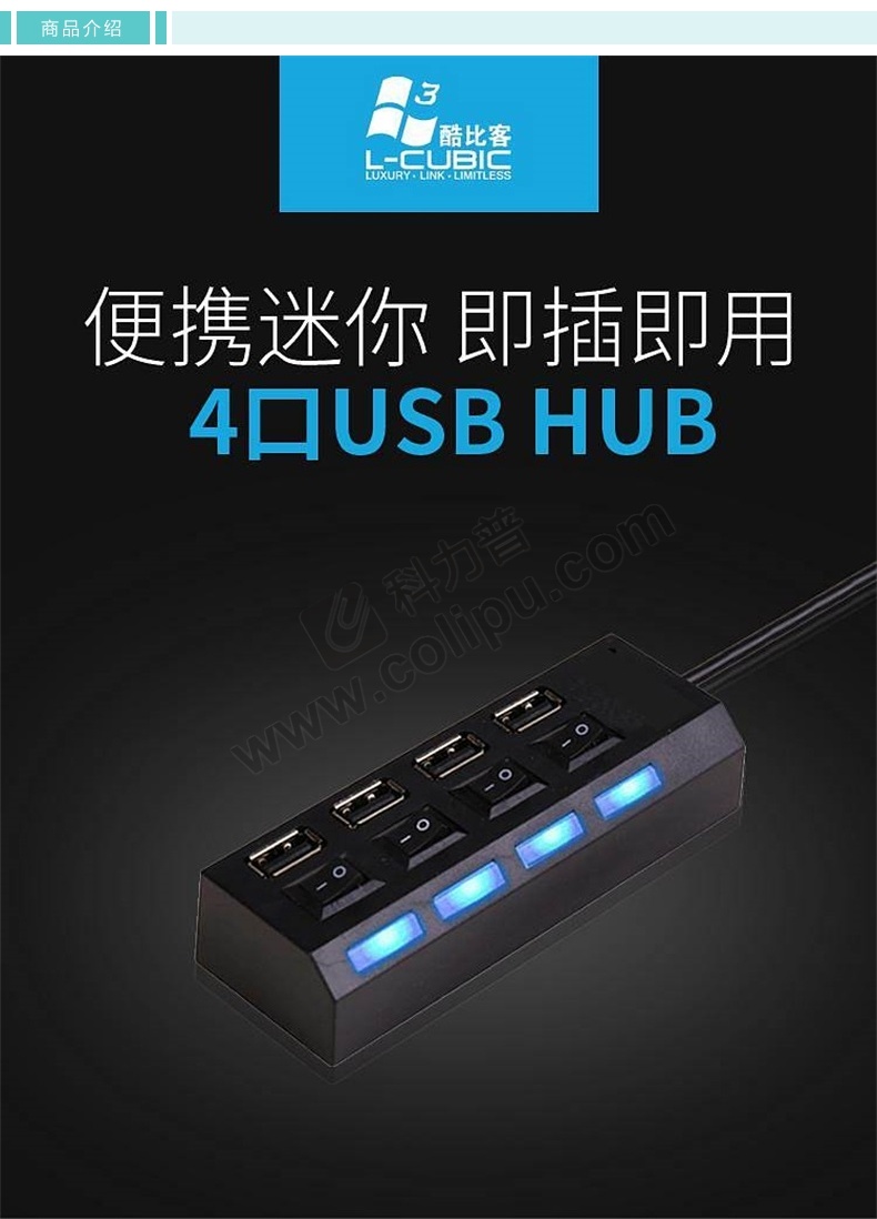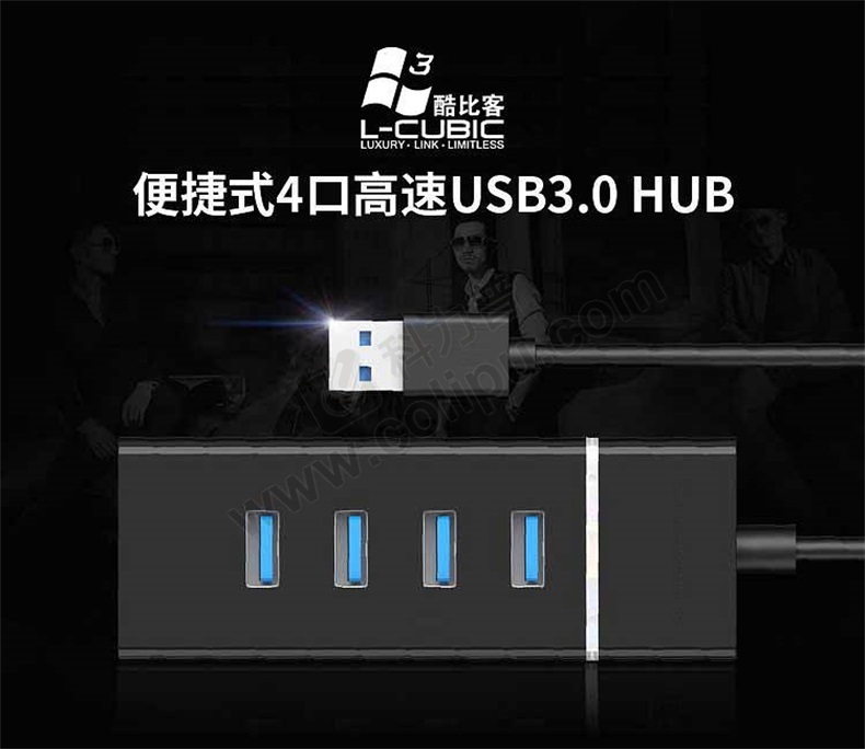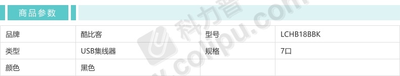 酷比客 L-CUBIC USB2.0集线器 LCHB18BBK 7口 (黑色) 带开关