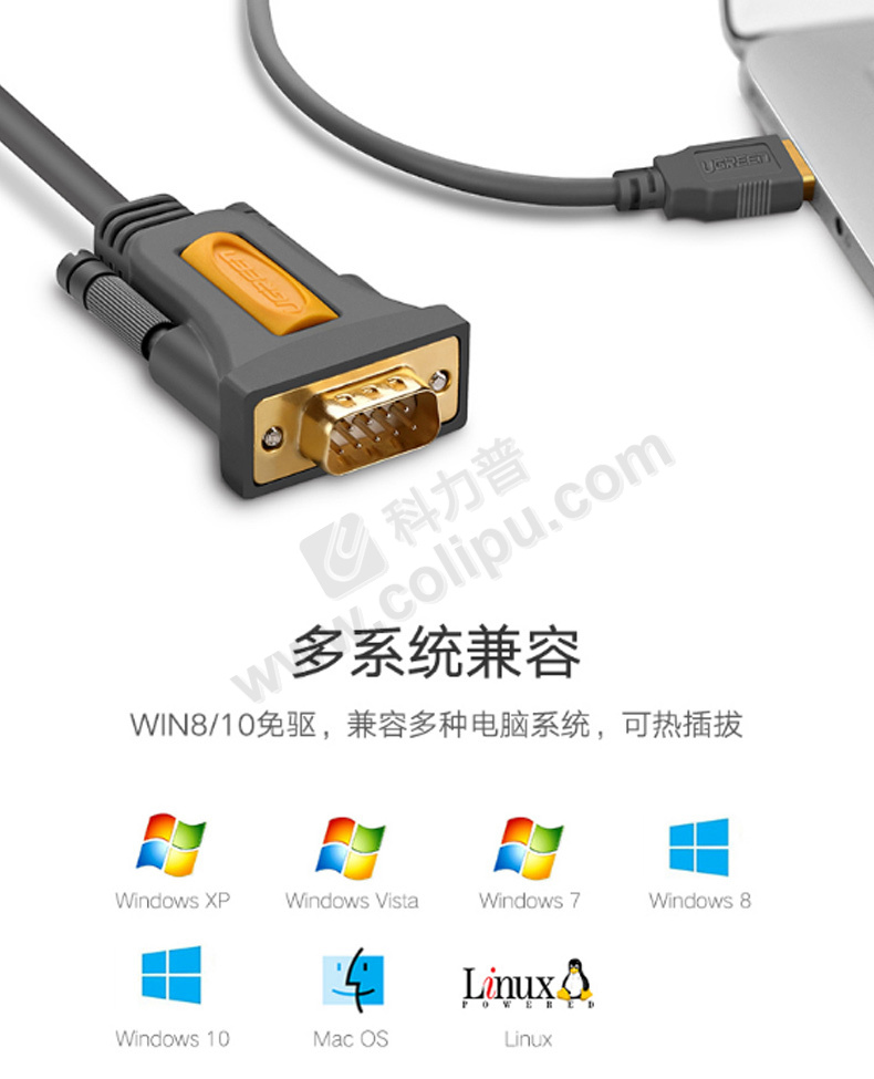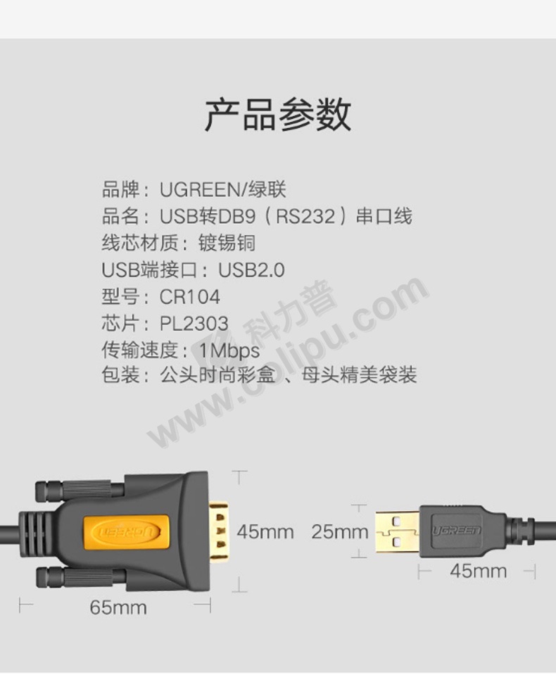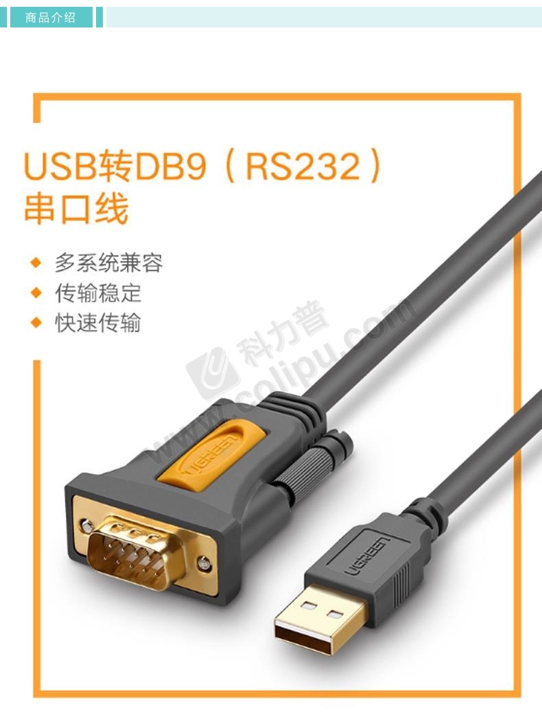 绿联 UGREEN USB转RS232串口连接转换线 USB转DB9 20210 CR104 1米