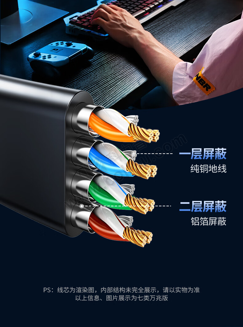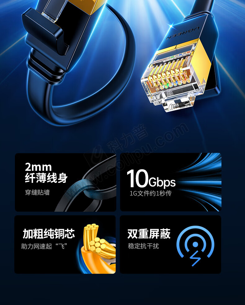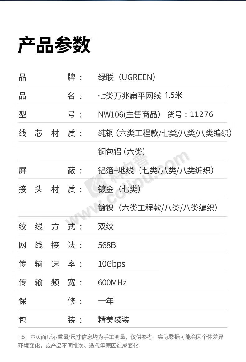 绿联 UGREEN 七类扁平网线 11276 NW106 1.5米