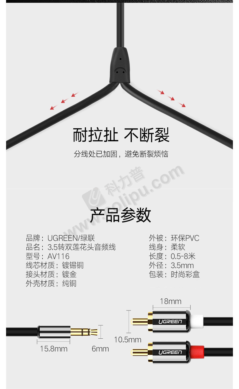 绿联/UGREEN VGA公对公连接线 11631 3m 圆线款 黑色