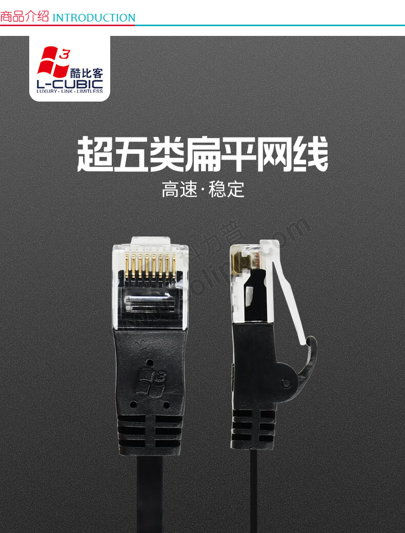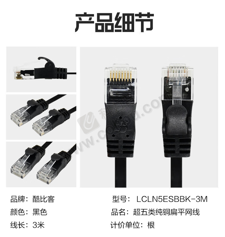 酷比客 L-CUBIC 超五类扁平网络线 LCLN5ESBBK-3M 3米 (黑色)