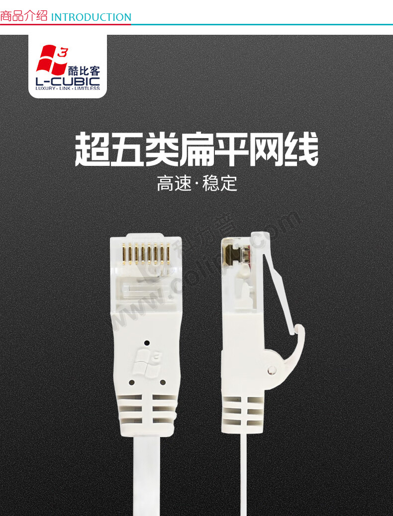 酷比客 L-CUBIC 超五类扁平网络线 LCLN5ESBWH-5M 5米 (白色)